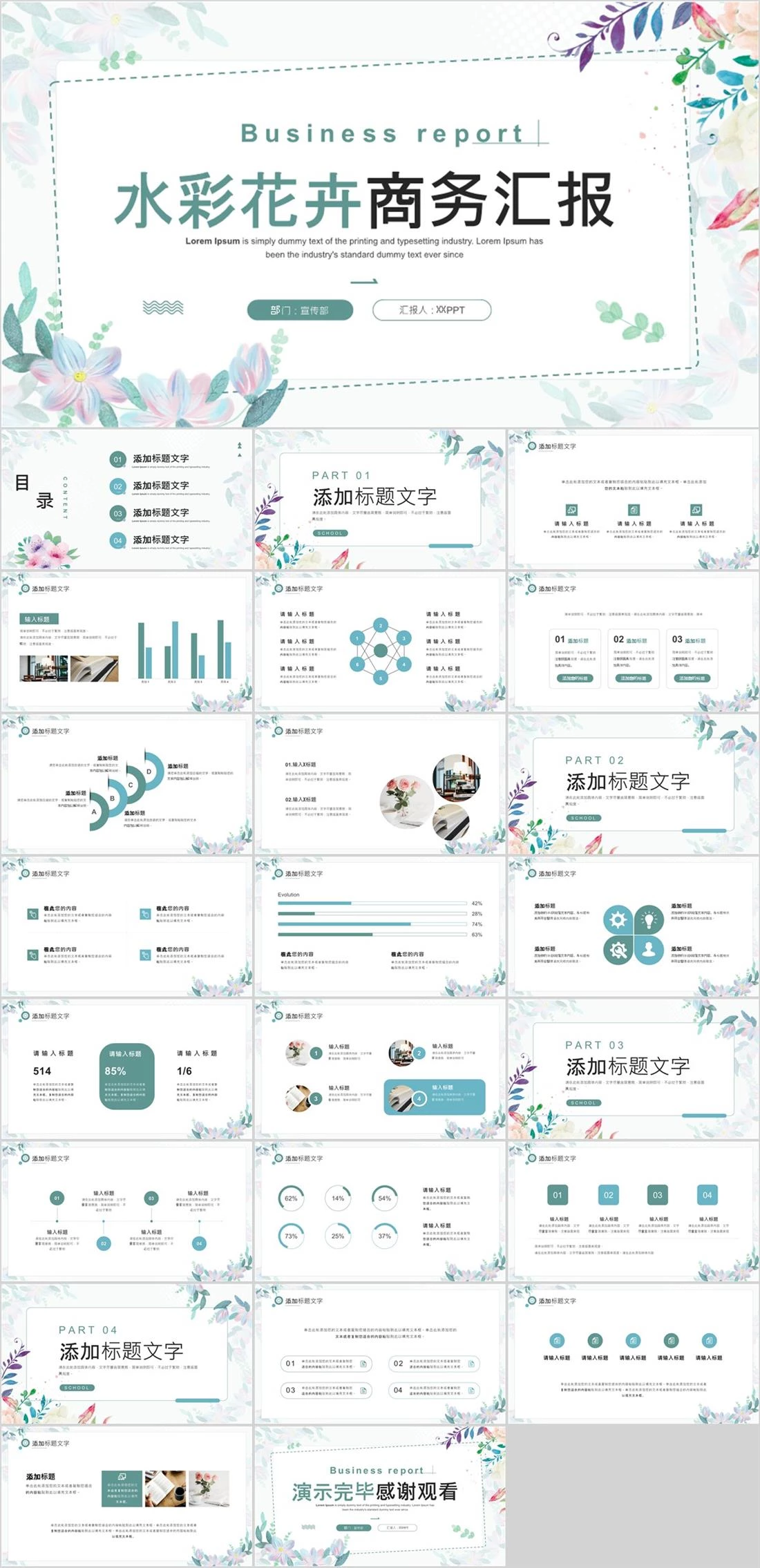 水彩花卉商务汇报Lorem Ipsum is simply dummy text of the printing and typesetting industry. Lorem Ipsum has been the industry's standard dummy text 164131528,水彩花卉,8909,