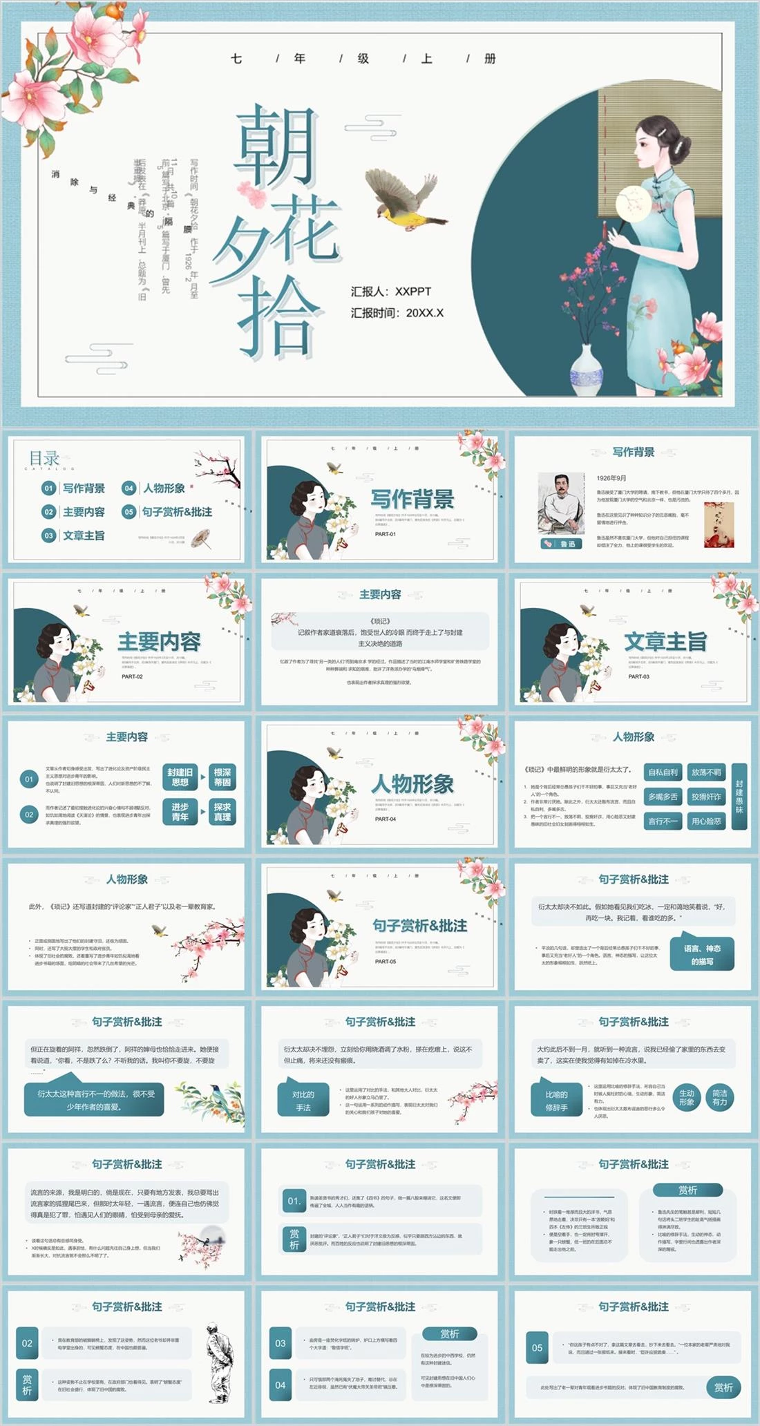 七/年/级/上/册汇报人:XXPPT汇报时间:20XX.X消除与经典的隔膜花花朝朝夕夕拾拾写作时间《朝花夕拾》作于1926年2月至11月,共10篇。前5篇写于北京,后5篇写于厦门,曾先后发表在《莽原》半月刊上,总题为《旧事重提》。164131528,读书笔记,8527,