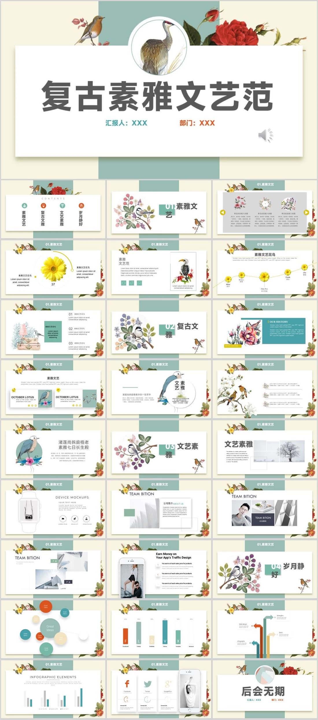 复古素雅文艺范汇报人:XXX部门:XXX49套梦幻自然风,模板,梦幻自然风,模板,37,