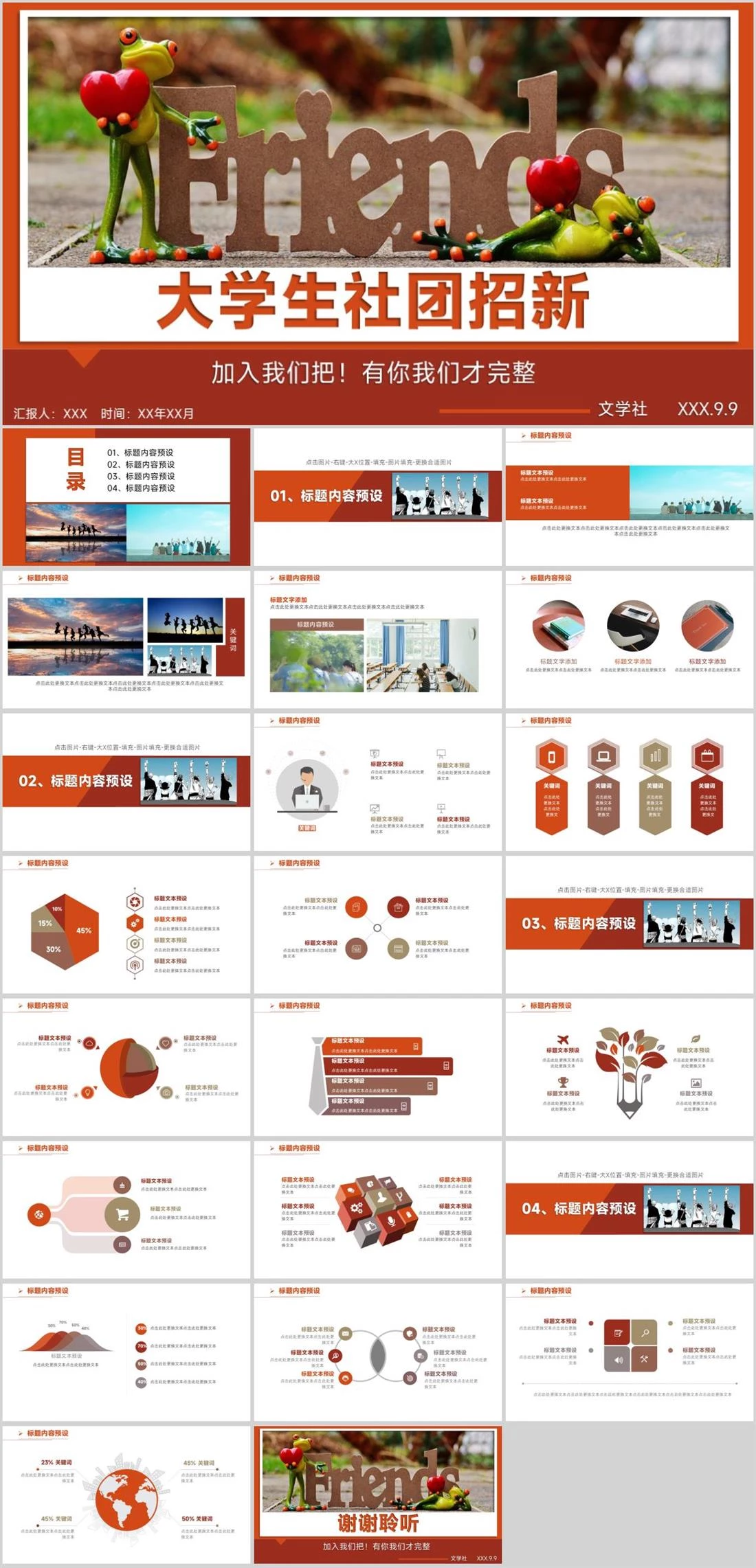 大学生社团招新加入我们把!有你我们才完整文学社 XXX.9.9汇报人:XXX 时间:XX年XX月021,招新,社团招新,9,