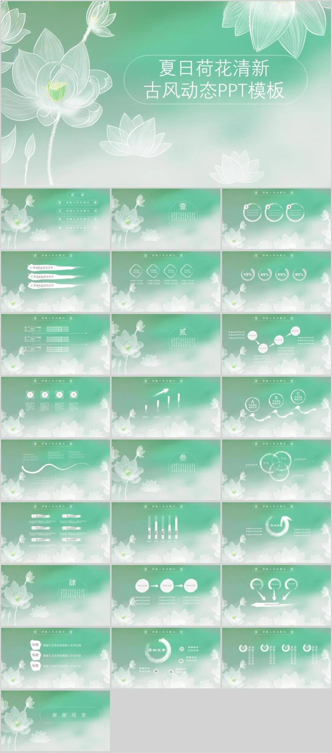 夏日荷花清新古风动态PPT模板108套清爽夏天夏日风,模板,清爽夏天夏季风,模板,10,