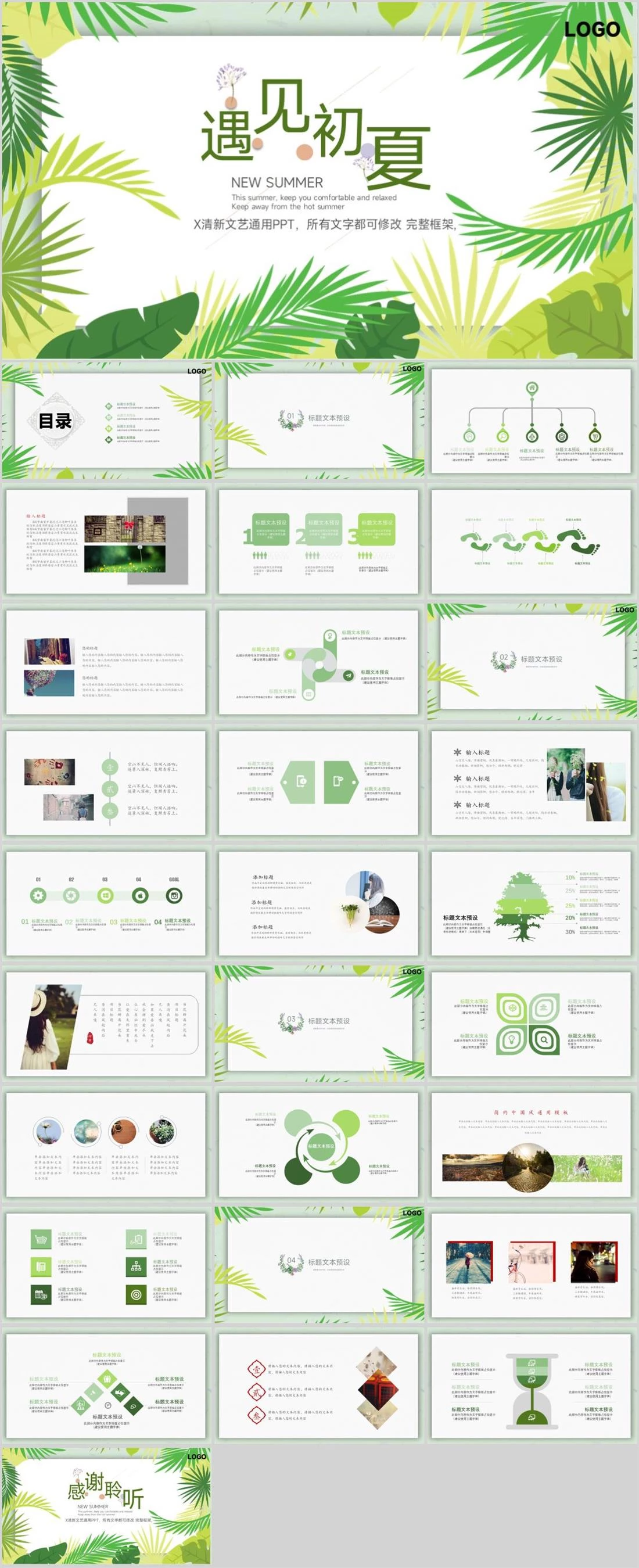 LOGO遇初见夏NEW SUMMERThis summer, keep you comfortable and relaxedKeep away from the hot summerX清新文艺通用PPT,所有文字都可修改 完整框架,108套清爽夏天夏日风,模板,清爽夏天夏季风,模板,32,