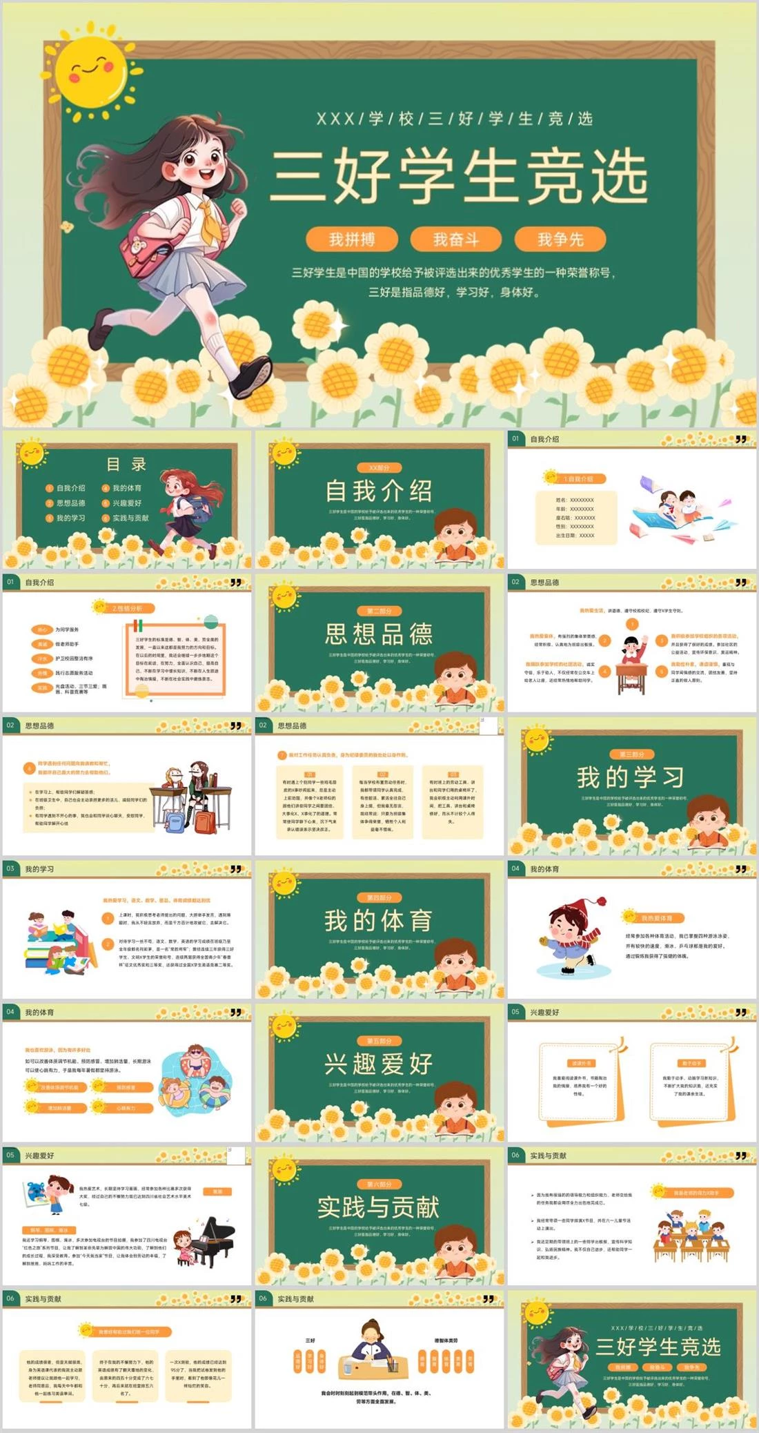 三好学生竞选我拼搏我奋斗我争先XXX/学/校/三/好/学/生/竞/选三好学生是中国的学校给予被评选出来的优秀学生的一种荣誉称号,三好是指品德好,学习好,身体好。三好学生竞选,903,