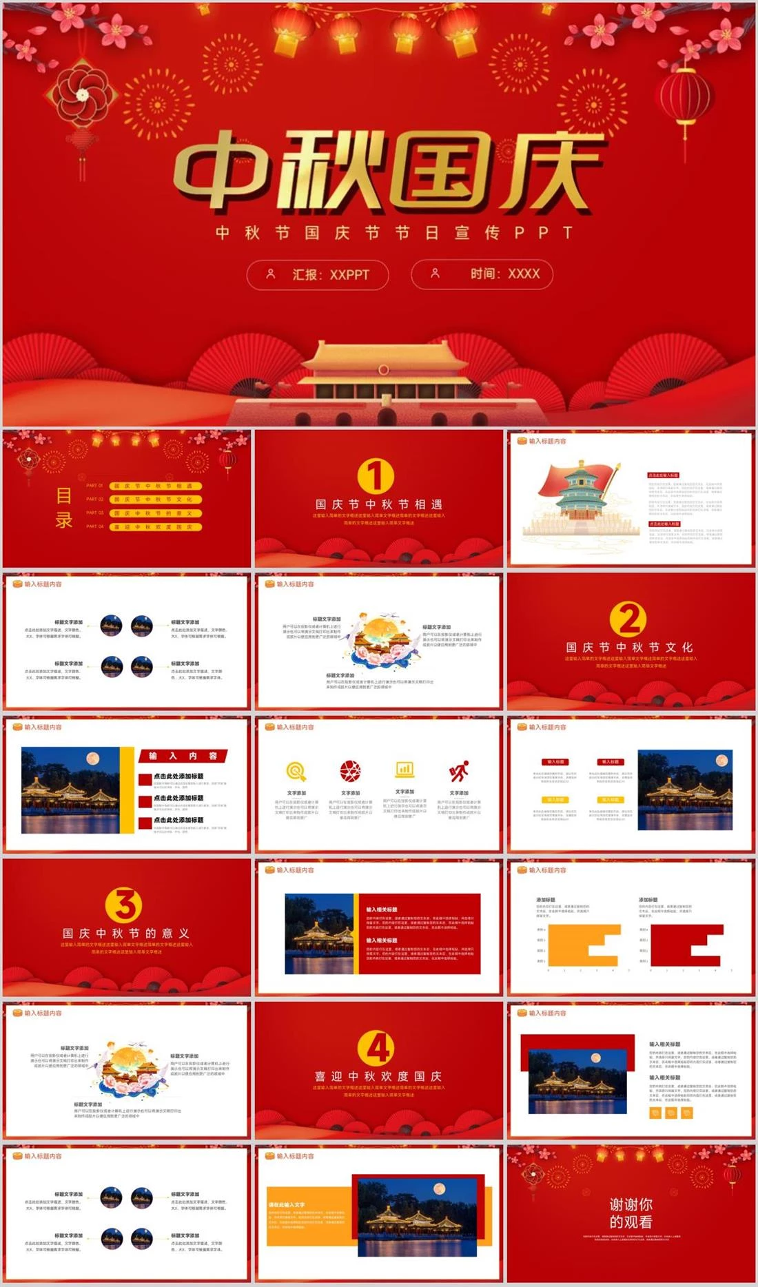 中秋节国庆节节日宣传PPT 汇报:XXPPT 时间:XXXX中秋国庆,1473,