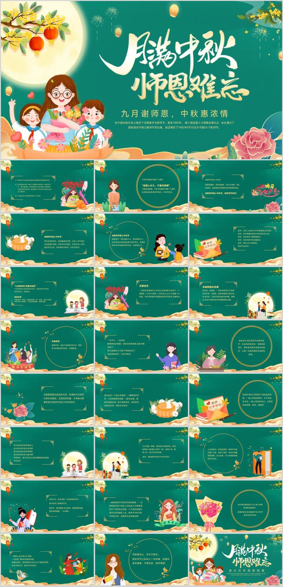 九月谢师恩,中秋惠浓情在中国近现代史上有多个日期曾作为教师节。直至1985年, 第六届全国人大常委会第九次 会议通过了国务院关于建立教师节的议案,真正确定了1985年9月10日为中国XX个教师节。中秋节,1305,