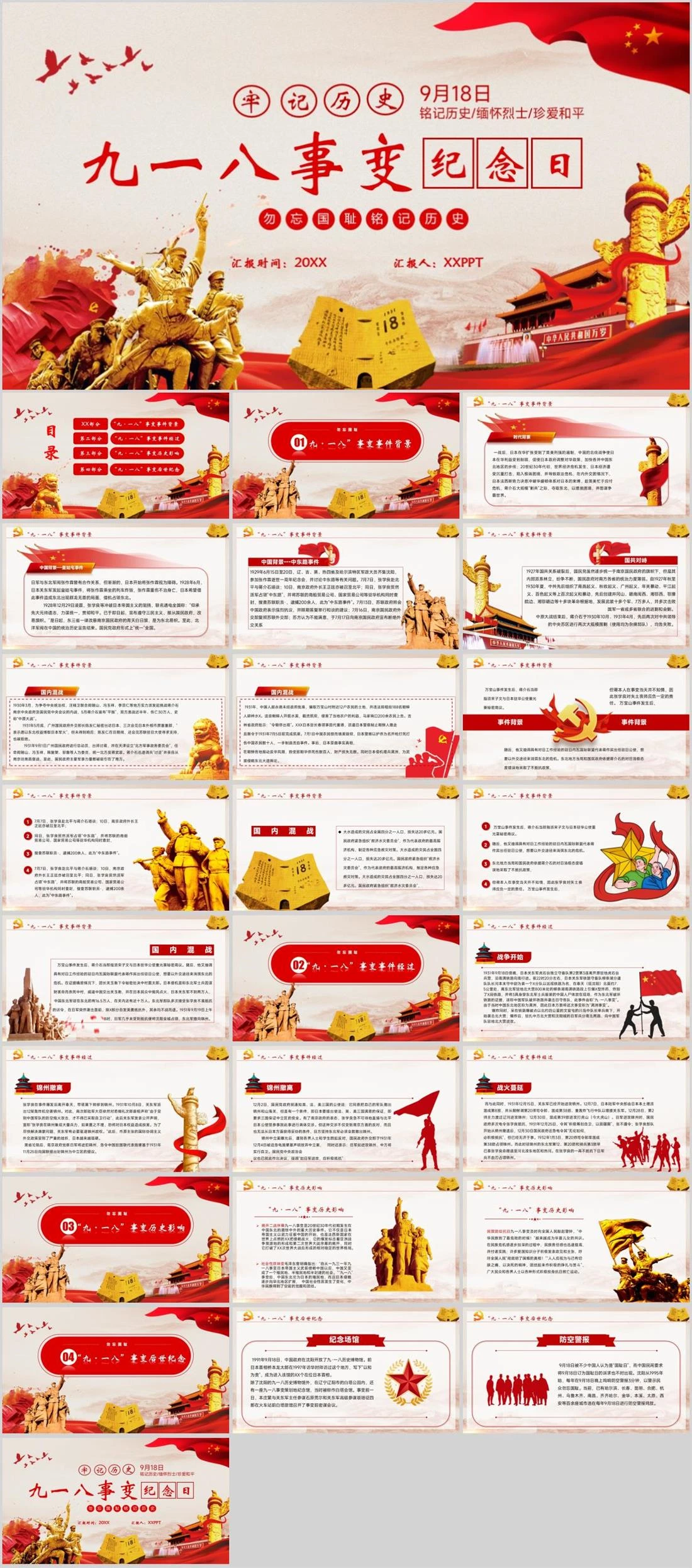 汇报时间:20XX 汇报人:XXPPT九一八事变纪念日牢记历史9月18日铭记历史/缅怀烈士/珍爱和平九一八事变,1614,