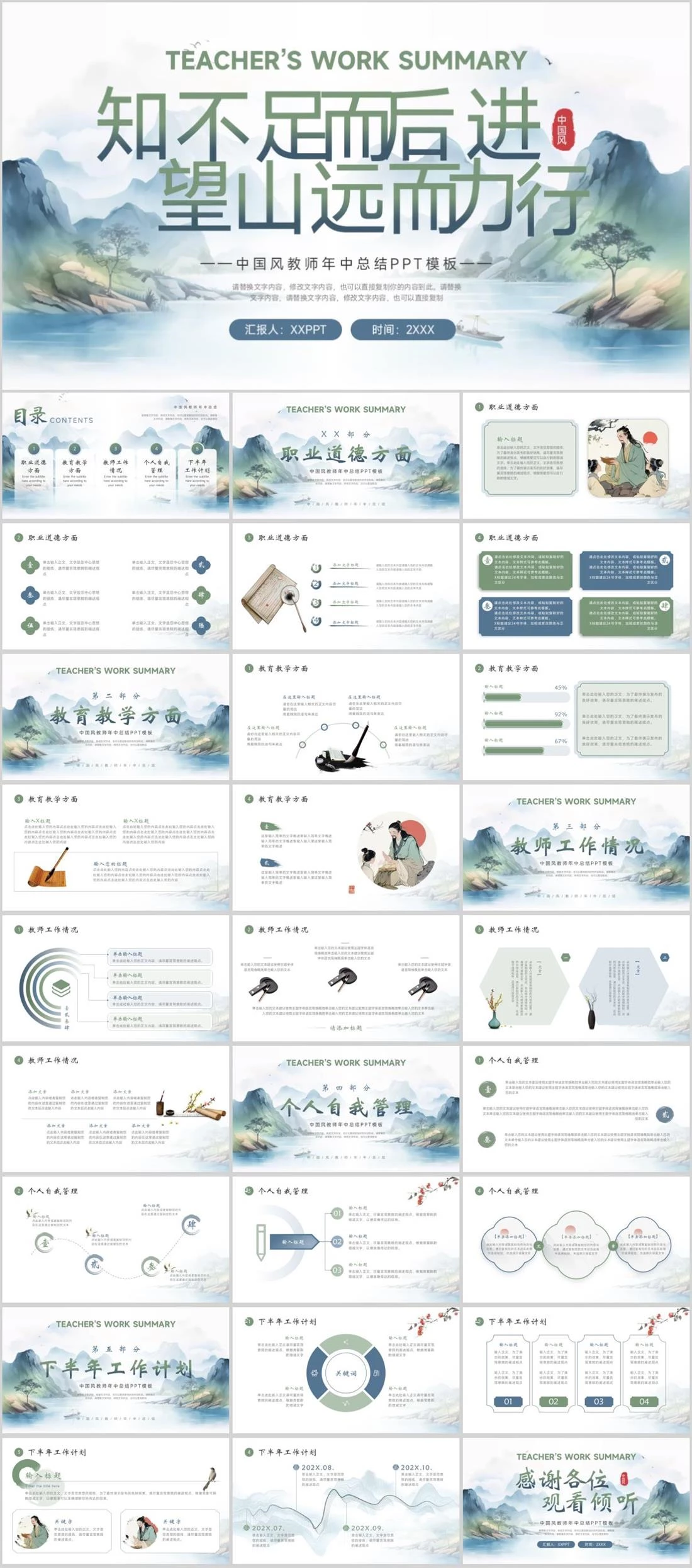 请替换文字内容,修改文字内容,也可以直接复制你的内容到此。请替换文字内容,请替换文字内容,修改文字内容,也可以直接复制汇报人:XXPPT 时间:2XXXTEACHER’S WORK SUMMARY——中国风教师年中总结PPT模板——知不足而后进望山远而力行中国风商务汇报,1289,