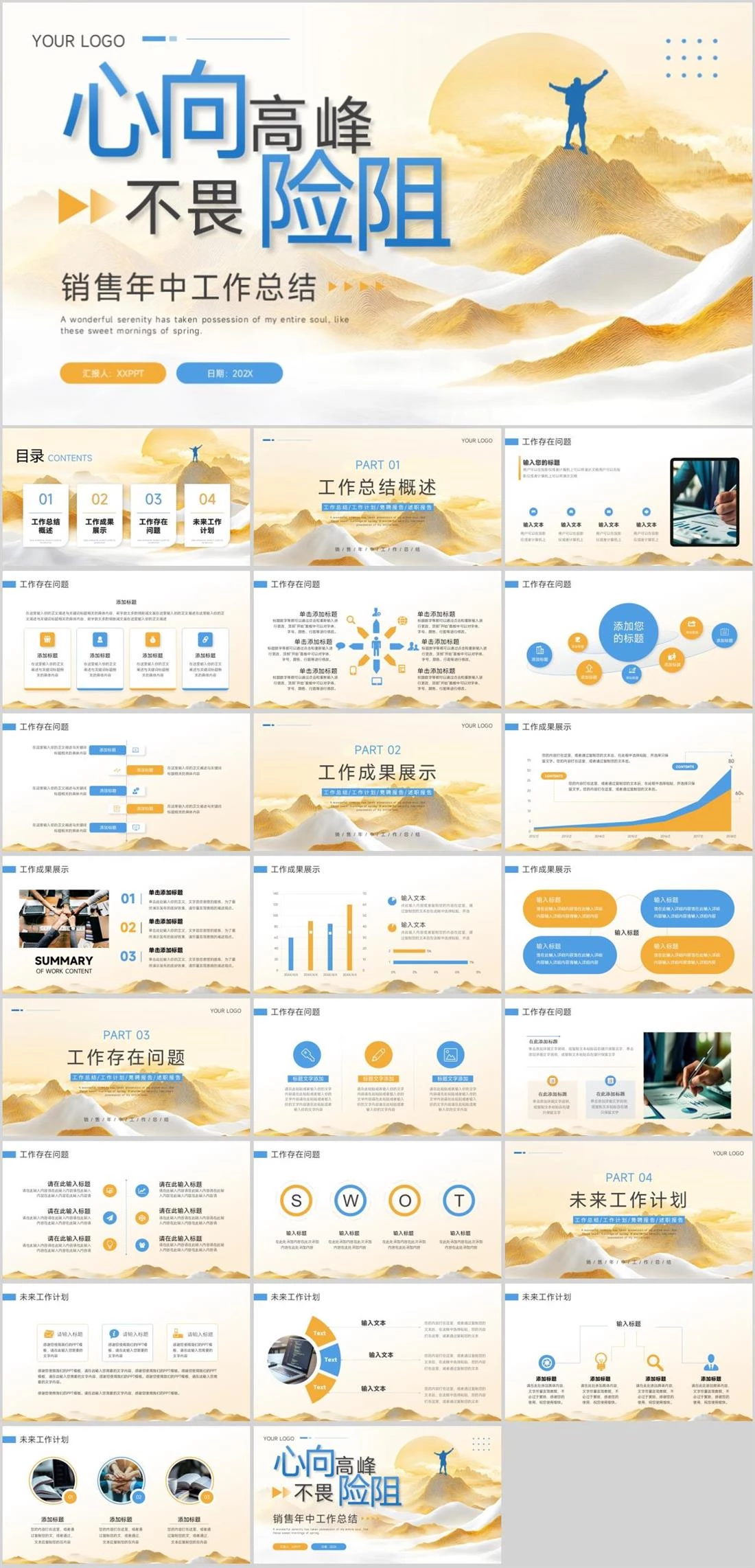 心向高峰险阻不畏A wonderful serenity has taken possession of my entire soul, like these sweet mornings of spring.日期:202X汇报人:XXPPTYOUR LOGO销售年中工作总结商务汇报,1330,