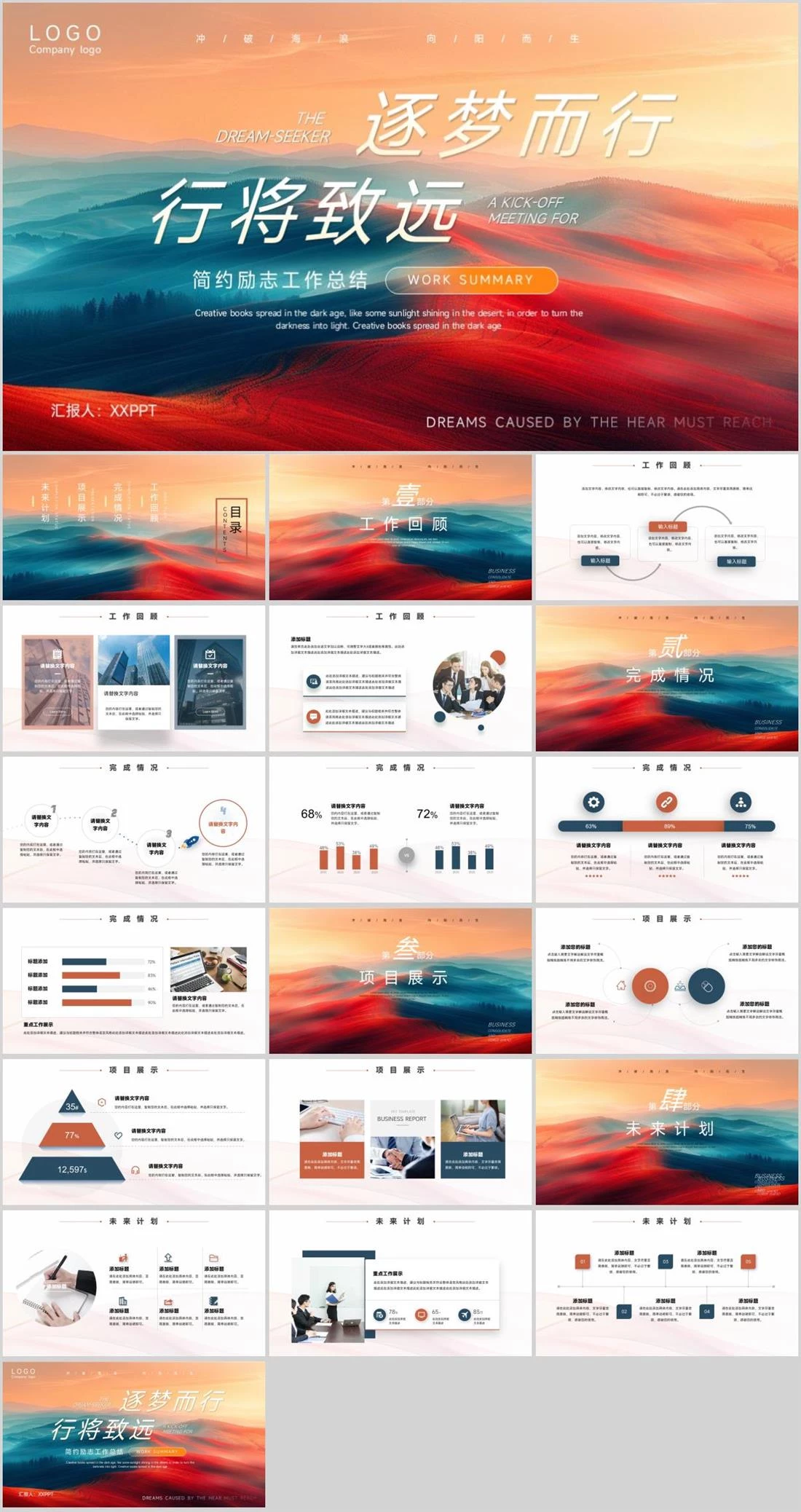 DREAMS CAUSED BY THE HEAR MUST REACH逐梦而行行将致远THE DREAM-SEEKERA KICK-OFFMEETING FOR冲/破/海/浪 向/阳/而/生LOGOCompany logo简约励志工作总结Creative books spread in th商务汇报,1419,