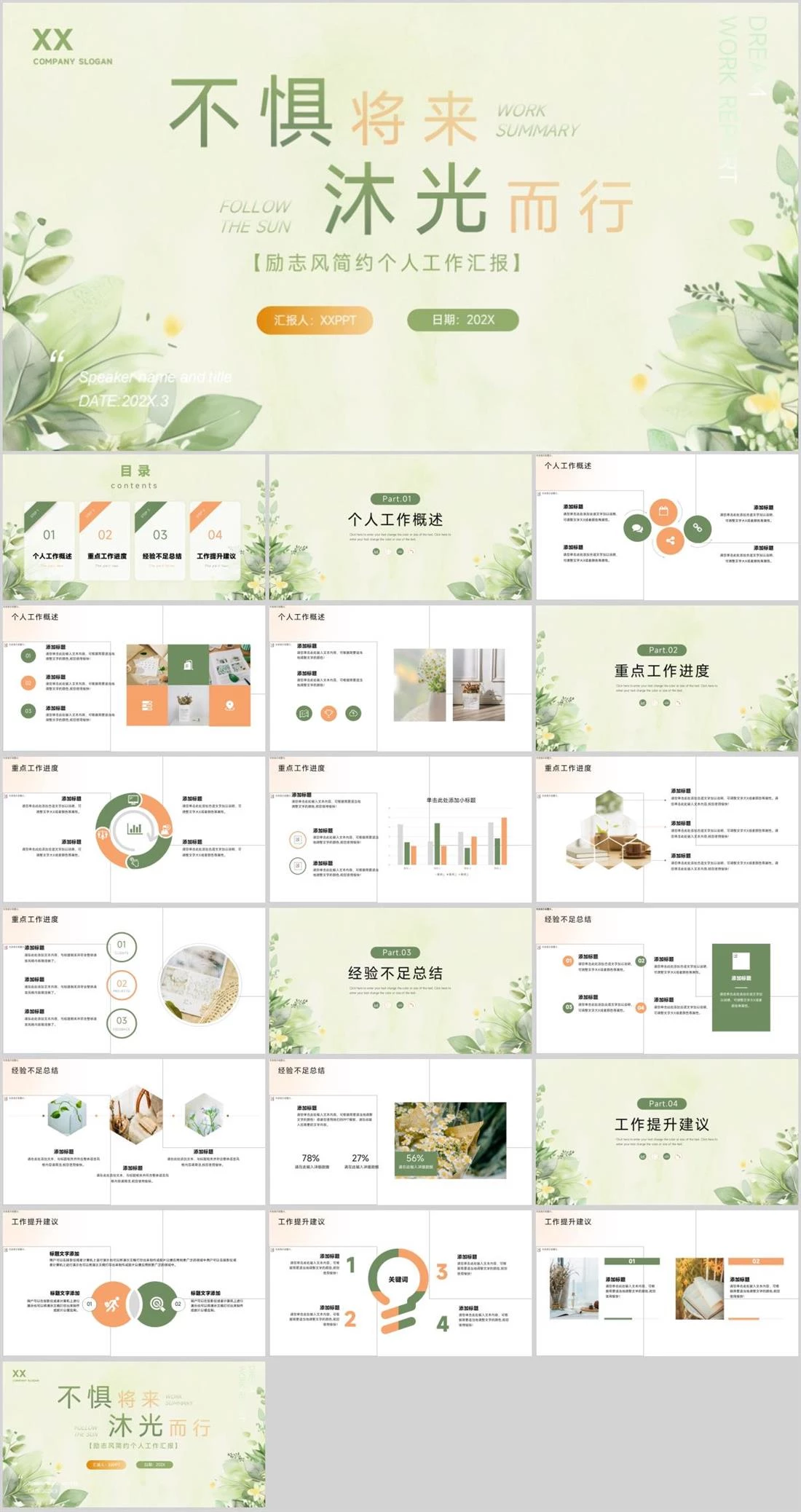 【励志风简约个人工作汇报】汇报人:XXPPT日期:202X不惧将来沐光而行WORK SUMMARYFOLLOW THE SUN“Speaker name and titleDATE:202X.3XXCOMPANY SLOGANWORK REPORTDREAM商务汇报,1673,