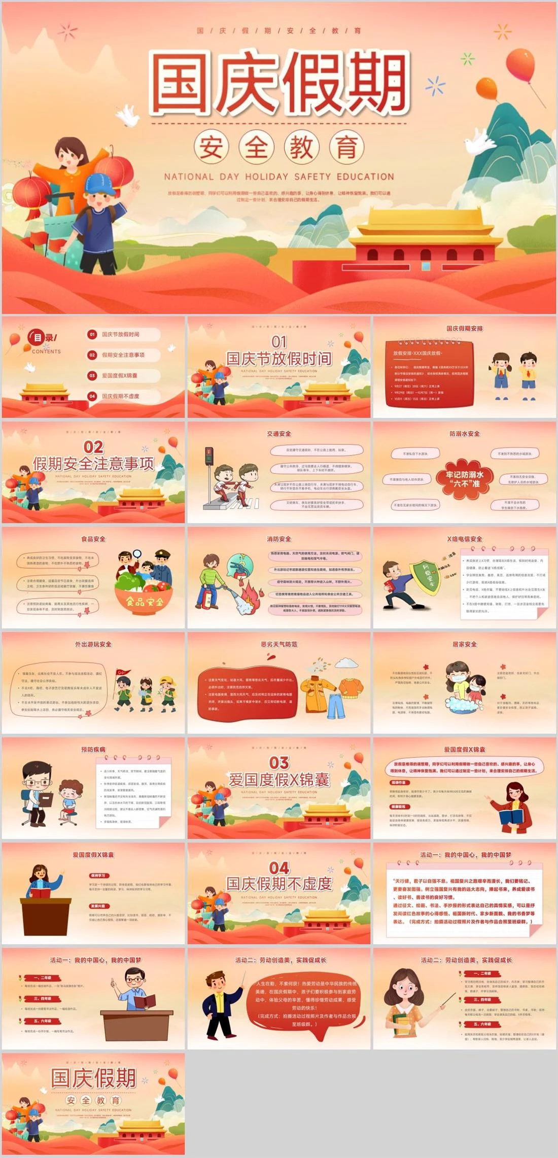 国庆假期国庆假期放假是难得的调整期,同学们可以利用假期做一些自己喜欢的、感兴趣的事,让身心得到休息,让精神恢复饱满。我们可以通过制定一些计划,来合理安排自己的假期生活。国/庆/假/期/安/全/教/育安全教育National Day holiday safety education国庆节,2732,