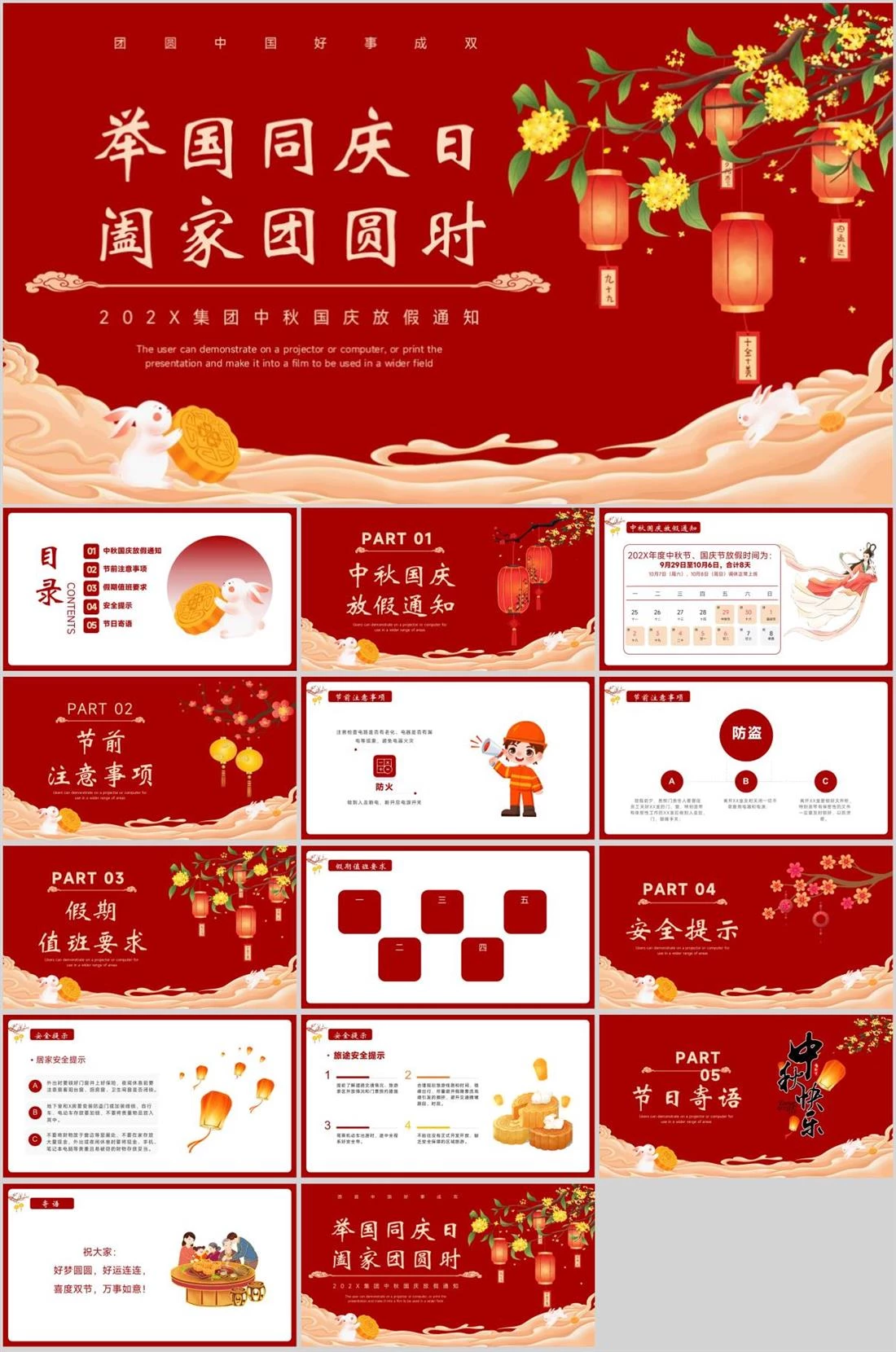 202X集团中秋国庆放假通知团圆中国好事成双举国同庆日 阖家团圆时The user can demonstrate on a projector or computer, or print the presentation and make it into a film to be used in 国庆节,2736,