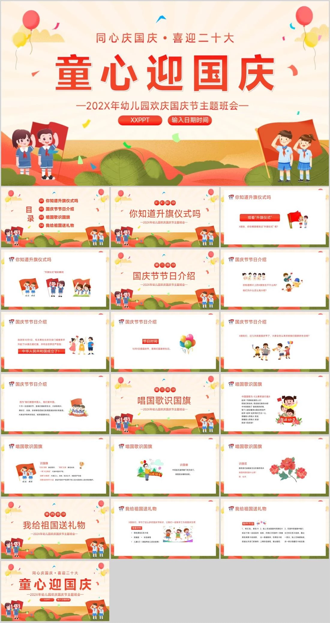 童心迎国庆—202X年幼儿园欢庆国庆节主题班会—XXPPT输入日期时间同心庆国庆•喜迎二十大国庆节,2780,