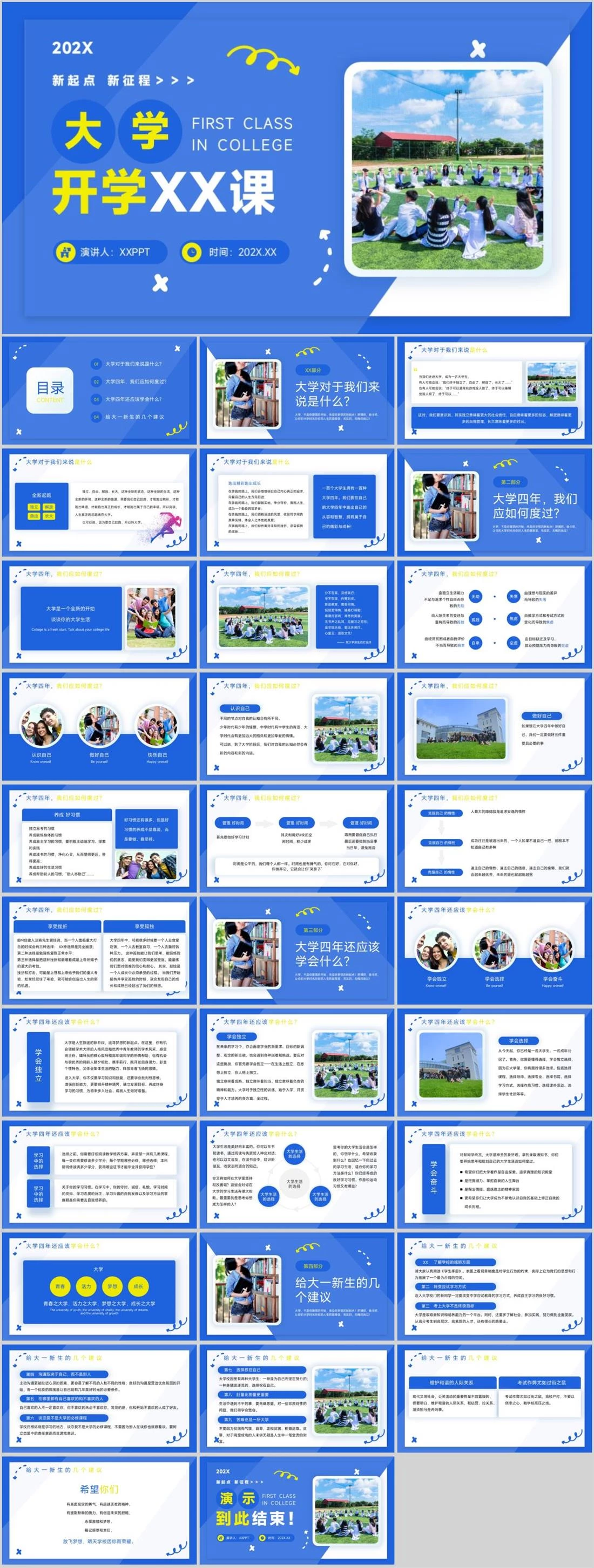 202X新起点 新征程>>>大学开学XX课FIRST CLASS IN COLLEGE演讲人:XXPPT时间:202X.XX大学开学,557,