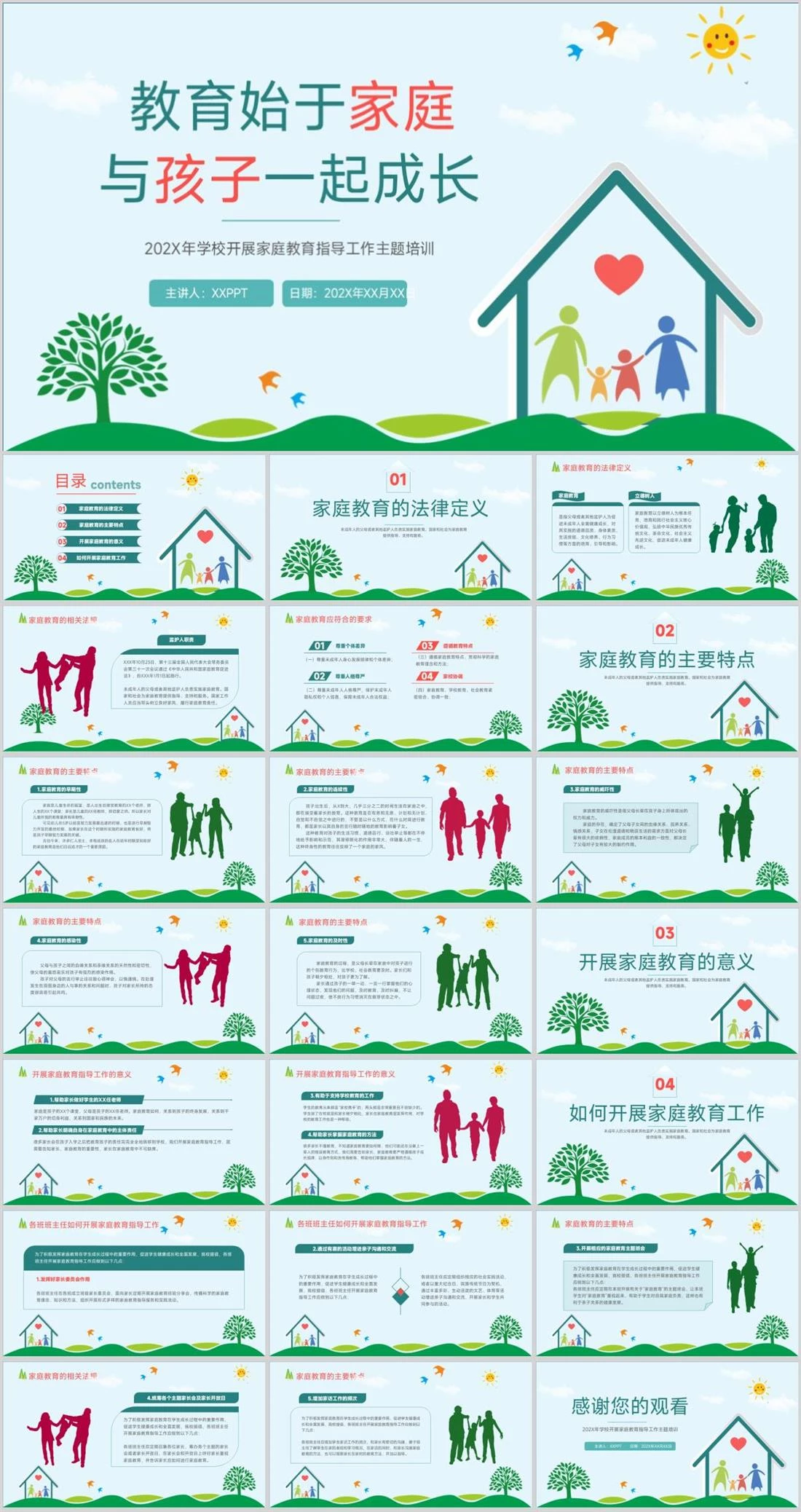 202X年学校开展家庭教育指导工作主题培训主讲人:XXPPT 日期:202X年XX月XX日与孩子一起成长教育始于家庭家庭教育讲座,722,