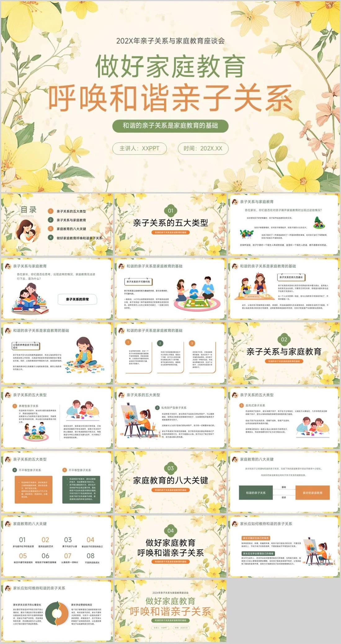 呼唤和谐亲子关系做好家庭教育202X年亲子关系与家庭教育座谈会和谐的亲子关系是家庭教育的基础主讲人:XXPPT 时间:202X.XX家庭教育讲座,734,
