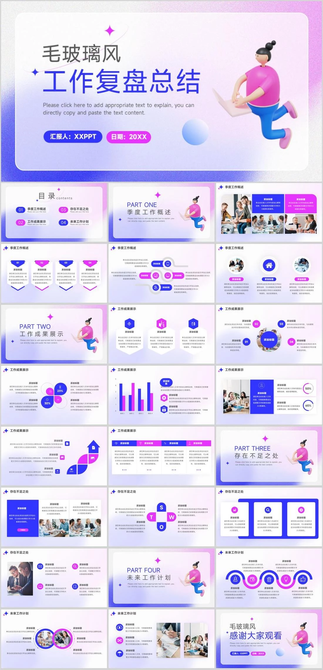 毛玻璃风工作复盘总结Please click here to add appropriate text to explain, you can directly copy and paste the text content.汇报人:XXPPT日期:20XX工作复盘总结,