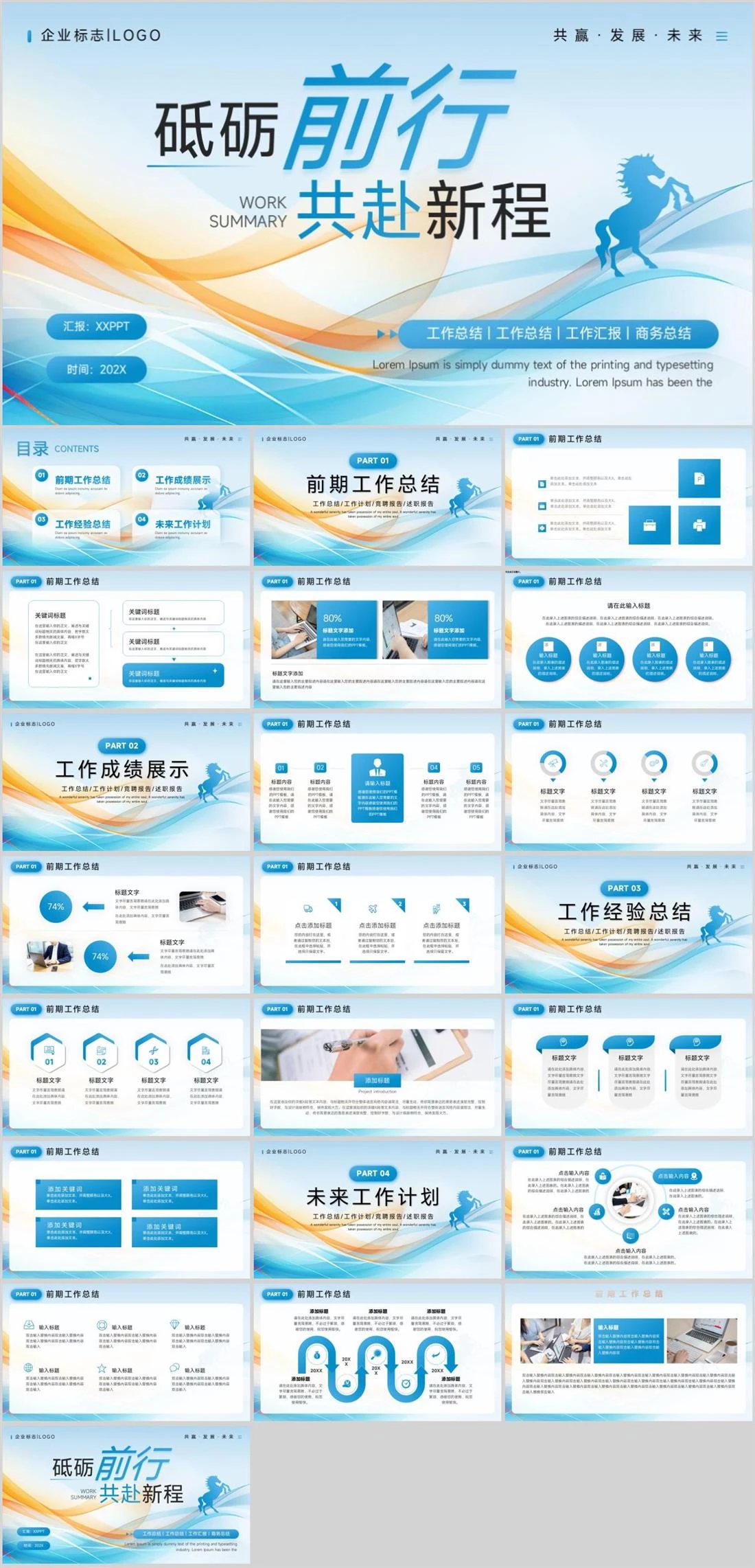 前行砥砺共赴新程WORK SUMMARYLorem Ipsum is simply dummy text of the printing and typesetting industry. Lorem Ipsum has been the工作总结 | 工作总结 | 工作汇报 | 商务总结企业标志|工作总结,2462,