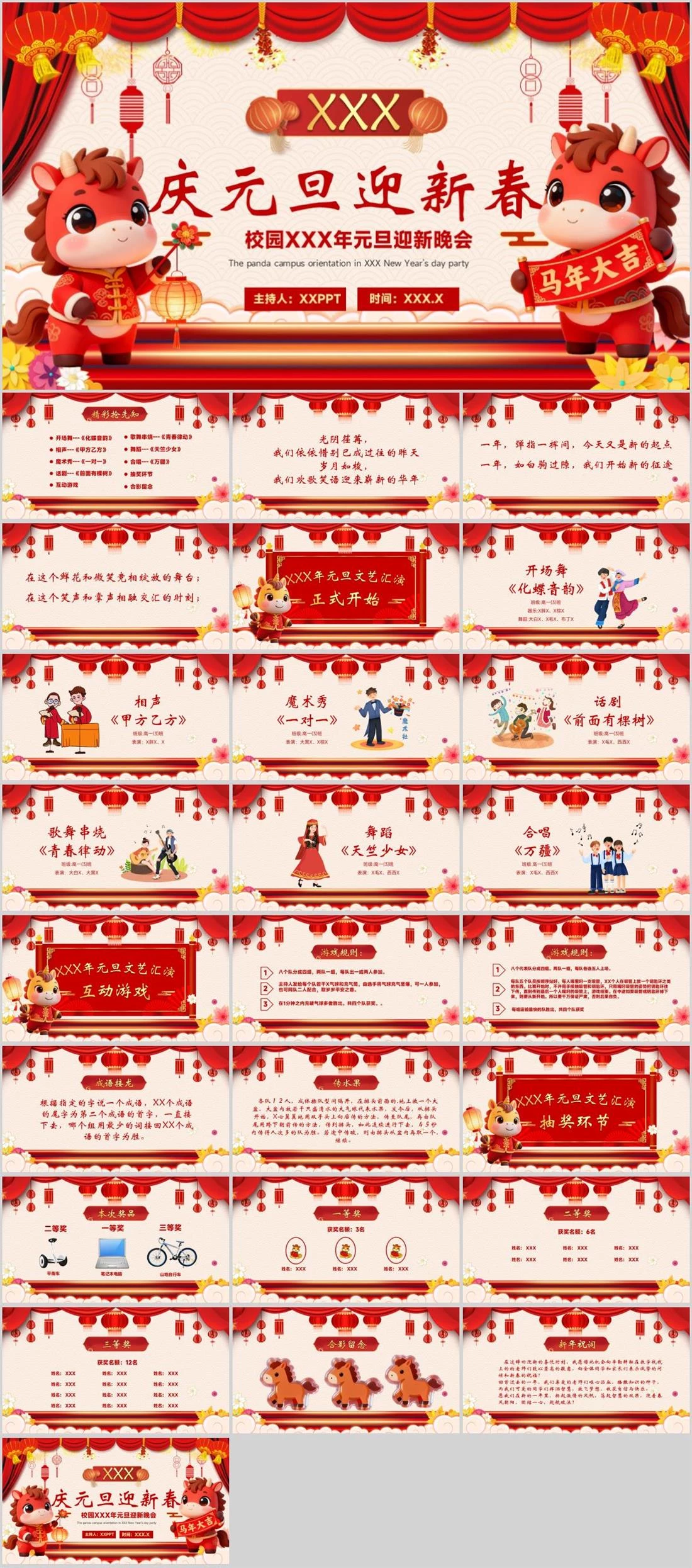 庆元旦迎新春 校园XXX年元旦迎新晚会XXX主持人:XXPPT 时间:XXX.XThe panda campus orientation in XXX New Year's day party元旦主题,2644,