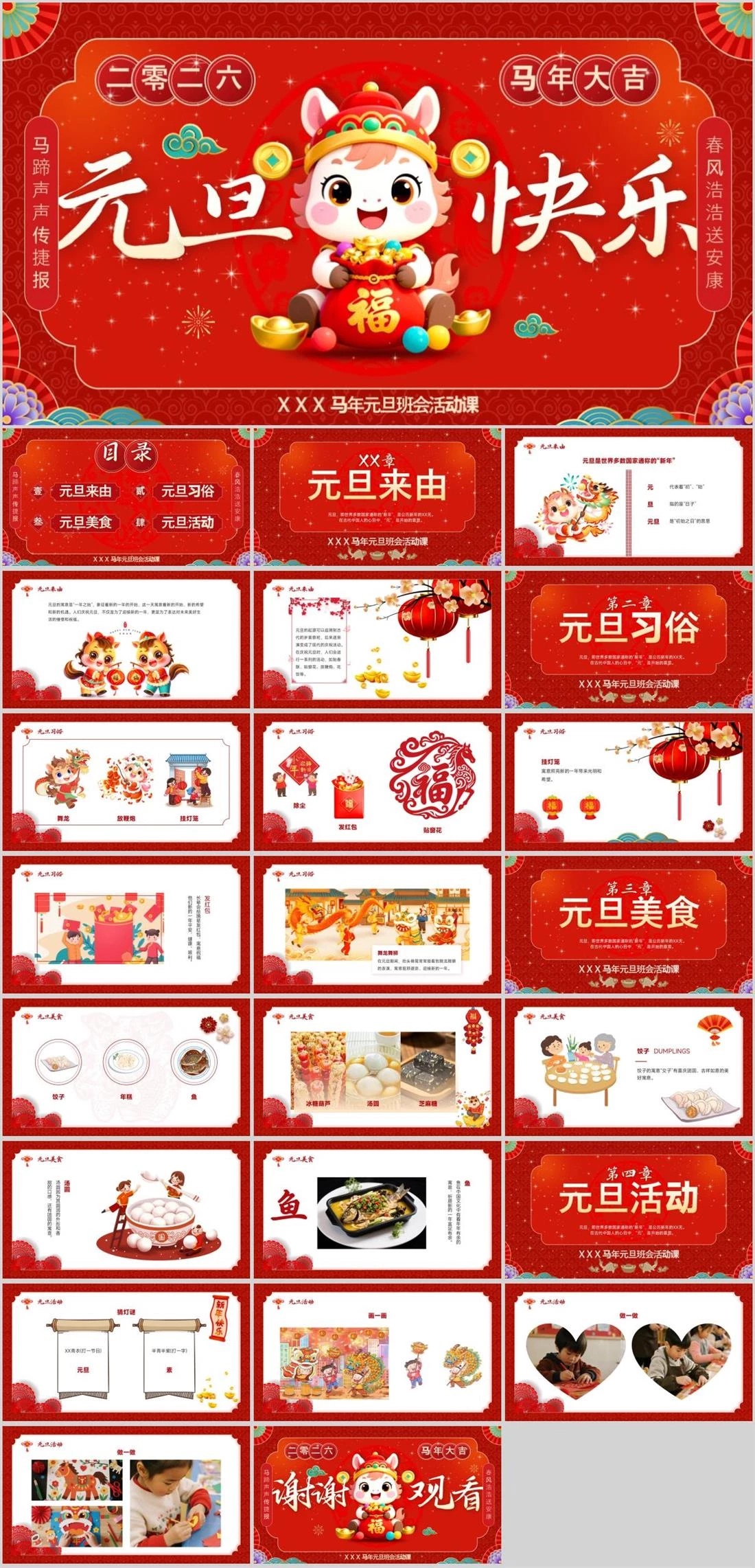 二零二六马年大吉元旦快乐XXX马年元旦班会活动课马蹄声声传捷报春风浩浩送安康元旦快乐,