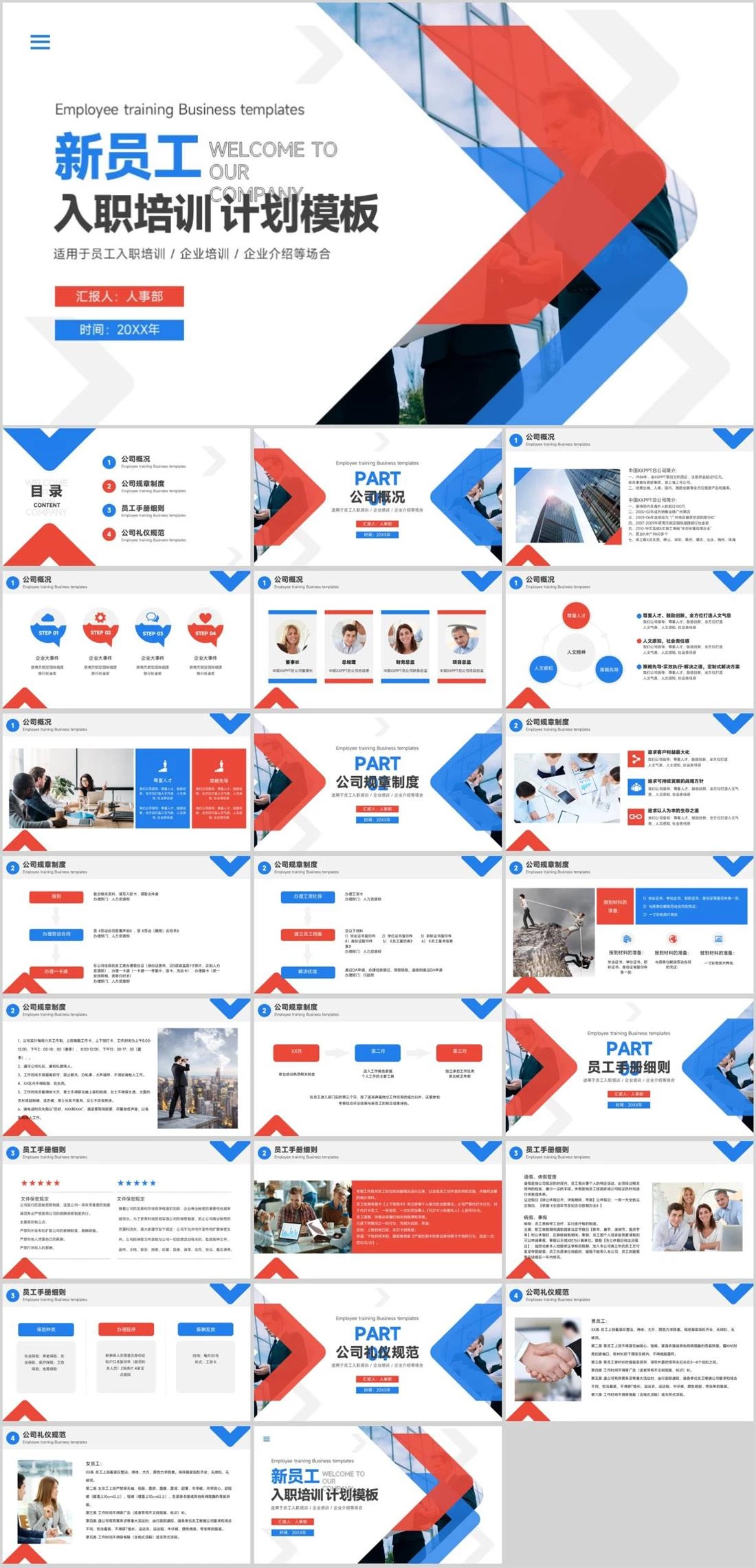 汇报人:人事部Employee training Business templates新员工 入职培训 计划模板适用于员工入职培训 / 企业培训 / 企业介绍等场合时间:20XX年WELCOME TO OUR COMPANY入职培训,