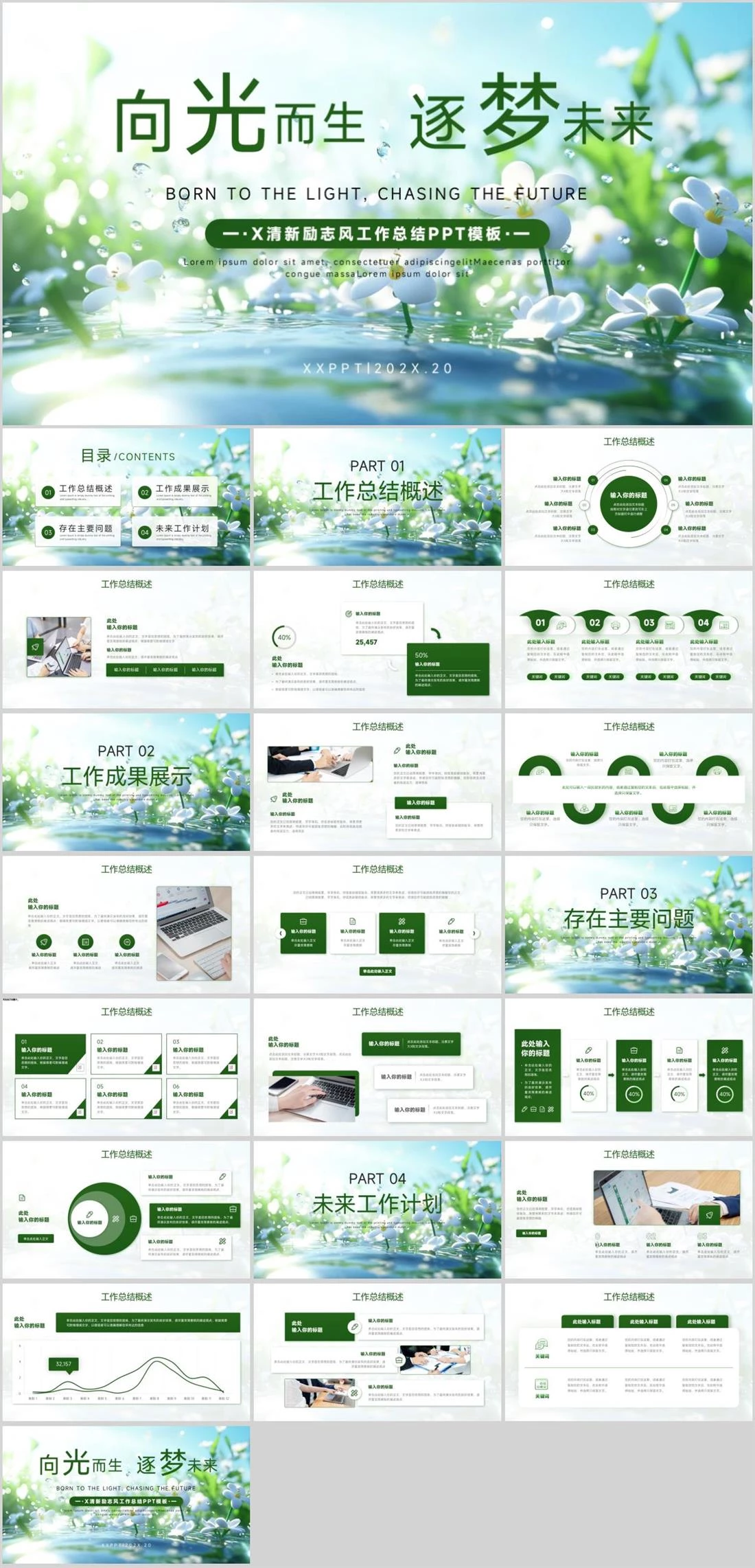 —·X清新励志风工作总结PPT模板·—BORN TO THE LIGHT, CHASING THE FUTURELorem ipsum dolor sit amet, consectetuer adipiscingelitMaecenas porttitor congue massaLorem ipsum励志商务风,