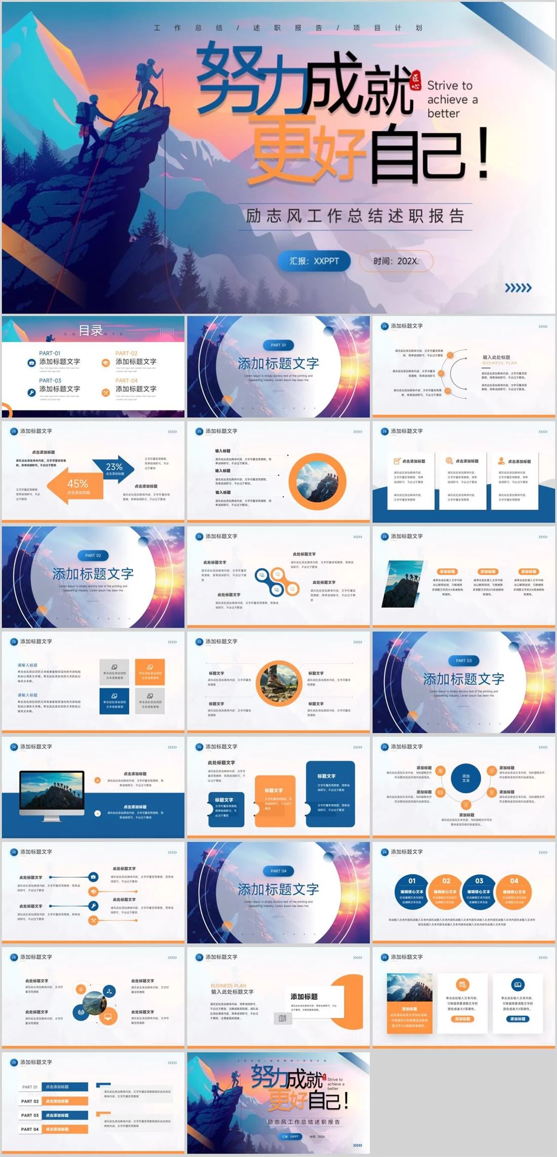 工作总结/述职报告/项目计划努力成就更好自己!Strive to achieve a better励志风工作总结述职报告汇报:XXPPT 时间:202X.励志商务风,866,