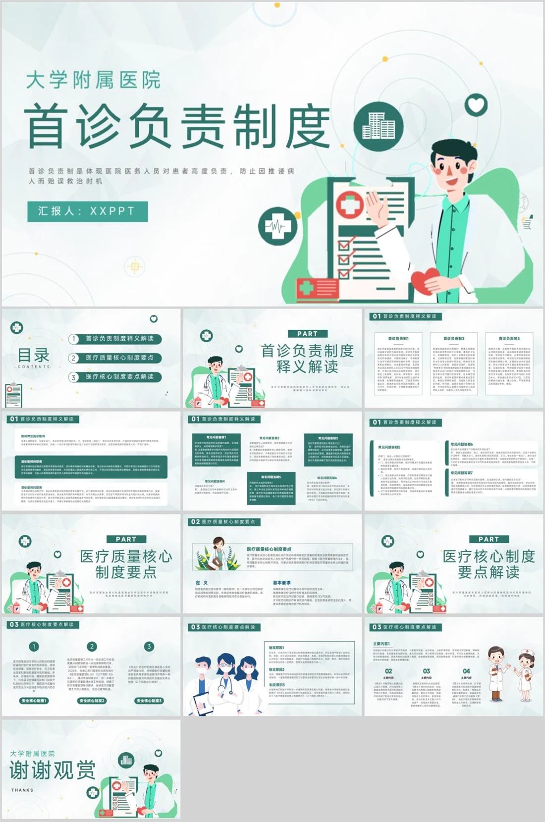 首诊负责制度大学附属医院首诊负责制是体现医院医务人员对患者高度负责,防止因推诿病人而贻误救治时机汇报人:XXPPT医疗护理,1717,