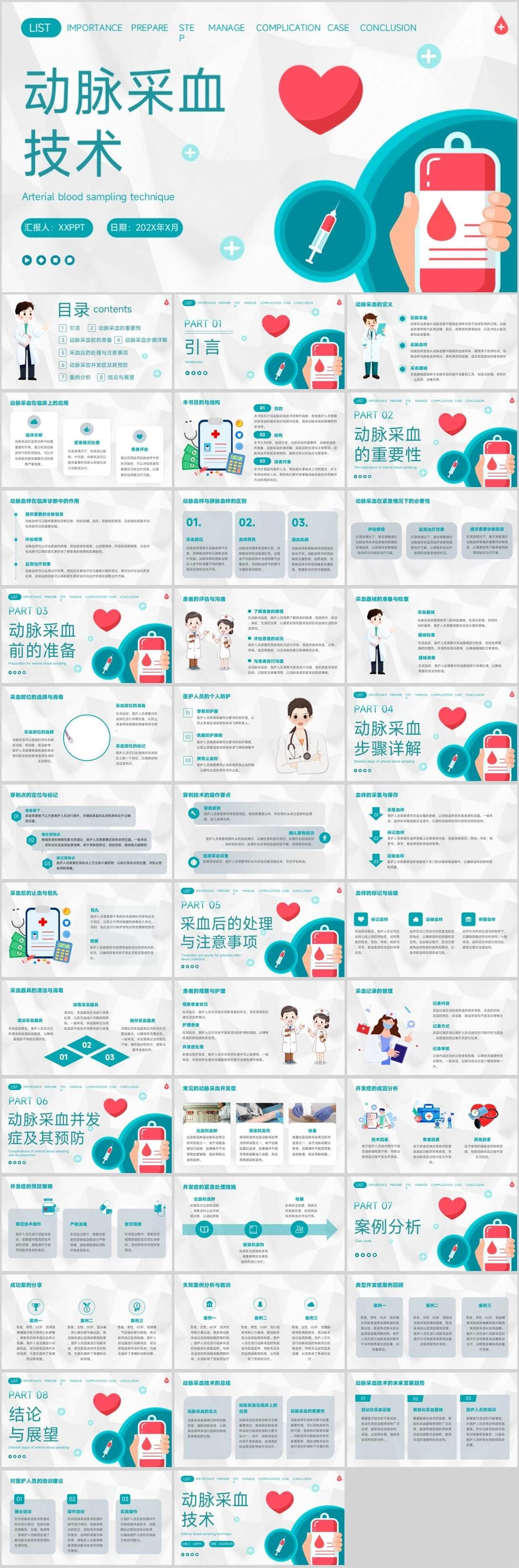 动脉采血技术汇报人:XXPPT 日期:202X年X月Arterial blood sampling techniqueLISTIMPORTANCEPREPARESTEPCOMPLICATIONMANAGECASECONCLUSION医疗护理,1777,