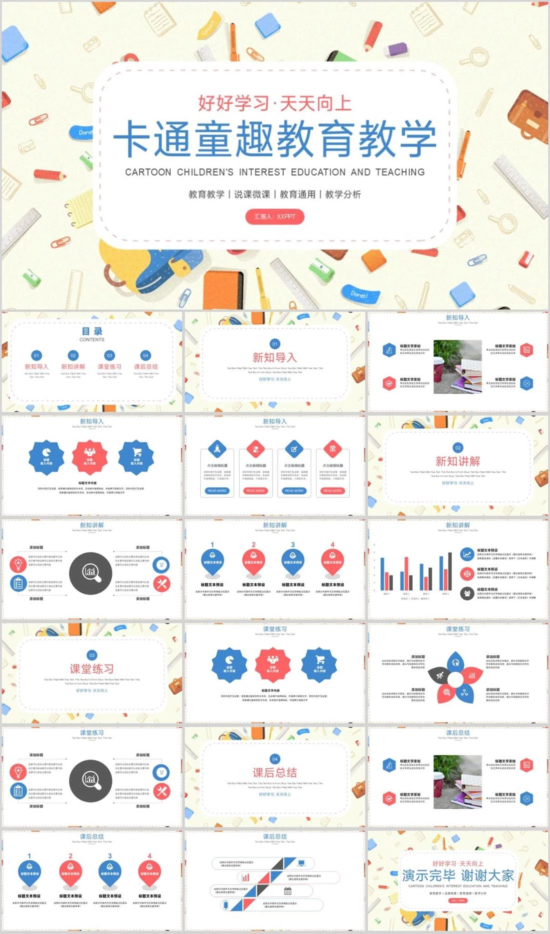 CARTOON CHILDREN'S INTEREST EDUCATION AND TEACHING好好学习·天天向上卡通童趣教育教学教育教学丨说课微课丨教育通用丨教学分析汇报人:XXPPT卡通可爱,983,