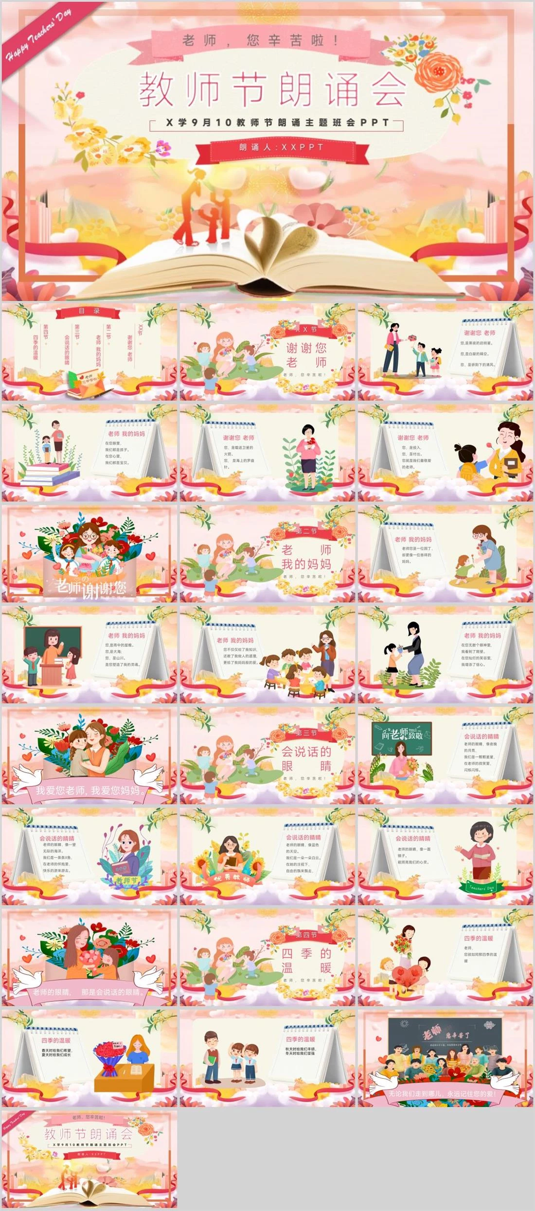 Happy Teachers' Day朗诵人:XXPPT 老师,您辛苦啦!教师节朗诵会 X学9月10教师节朗诵主题班会PPT教师节,1598,