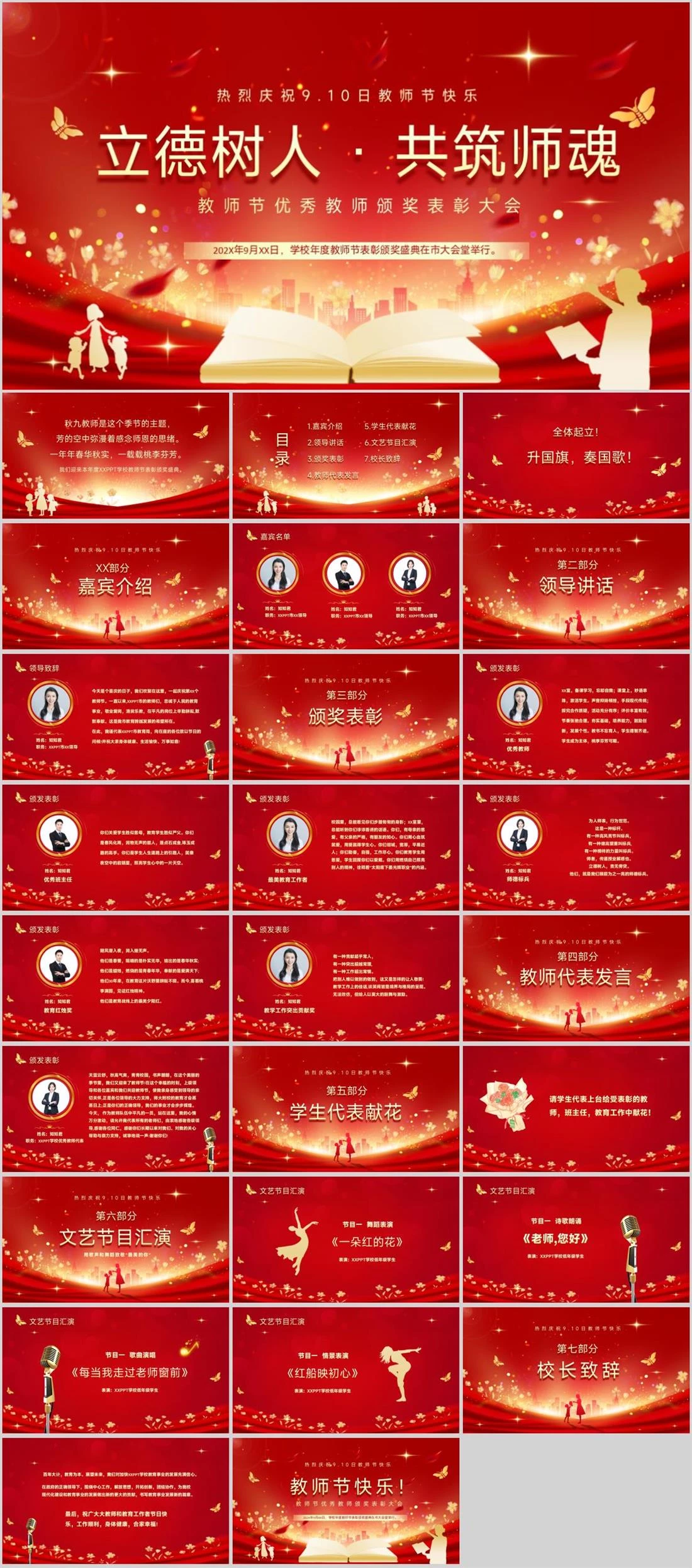立德树人 · 共筑师魂教师节优秀教师颁奖表彰大会202X年9月XX日,学校年度教师节表彰颁奖盛典在市大会堂举行。热烈庆祝9.10日教师节快乐教师节颁奖,