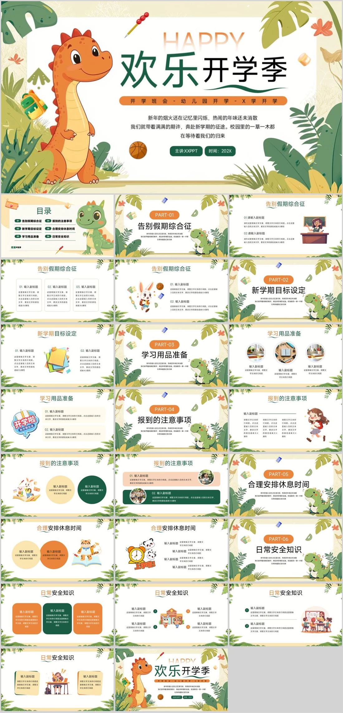 HAPPY欢乐开学季开学班会-幼儿园开学-X学开学新年的烟火还在记忆里闪烁,热闹的年味还未消散我们就带着满满的期许,奔赴新学期的征途。校园里的一草一木都在等待着我们的归来主讲:XXPPT时间:202X新学期,590,