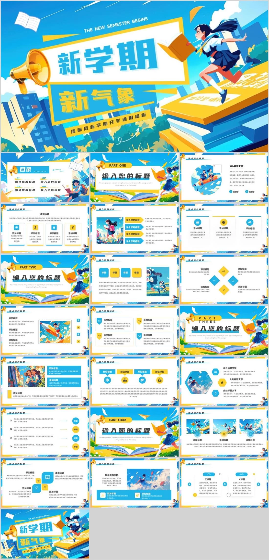 插画风新学期开学通用模板THE NEW SEMESTER BEGINS新学期,591,