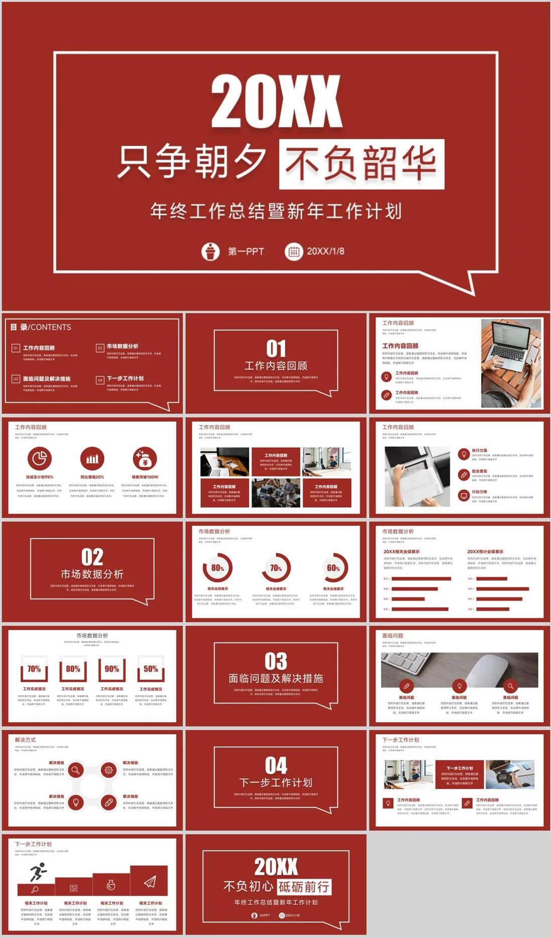 第一PPT20XX/1/8年终工作总结暨新年工作计划20XX只争朝夕不负韶华新年主题,2048,