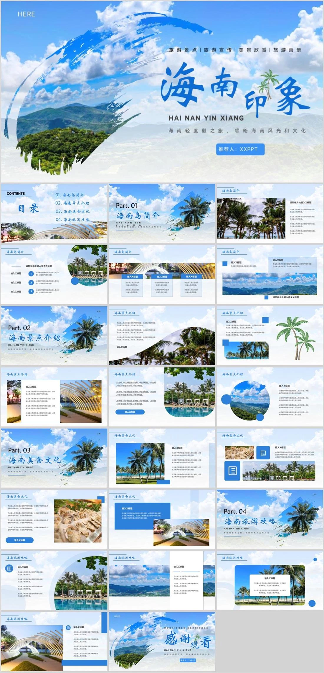 海南印象推荐人:XXPPT海南轻度假之旅,领略海南风光和文化HAI NAN YIN XIANG旅游景点|旅游宣传|美景欣赏|旅游画册 HERE旅行画册,