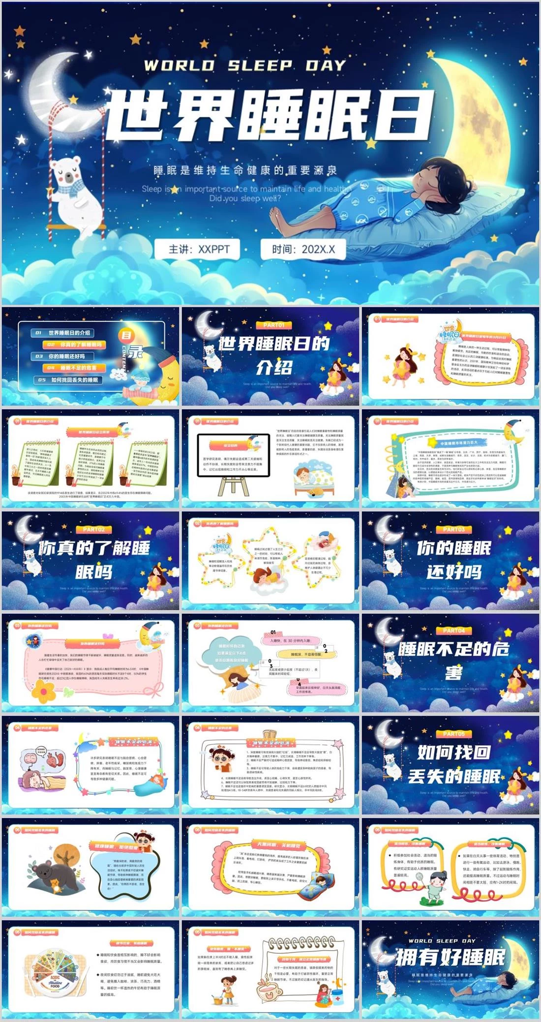 世界睡眠日WORLD SLEEP DAY睡眠是维持生命健康的重要源泉Sleep is an important source to maintain life and health.Did you sleep well? 主讲:XXPPT 时间:202X.X校园活动,476,
