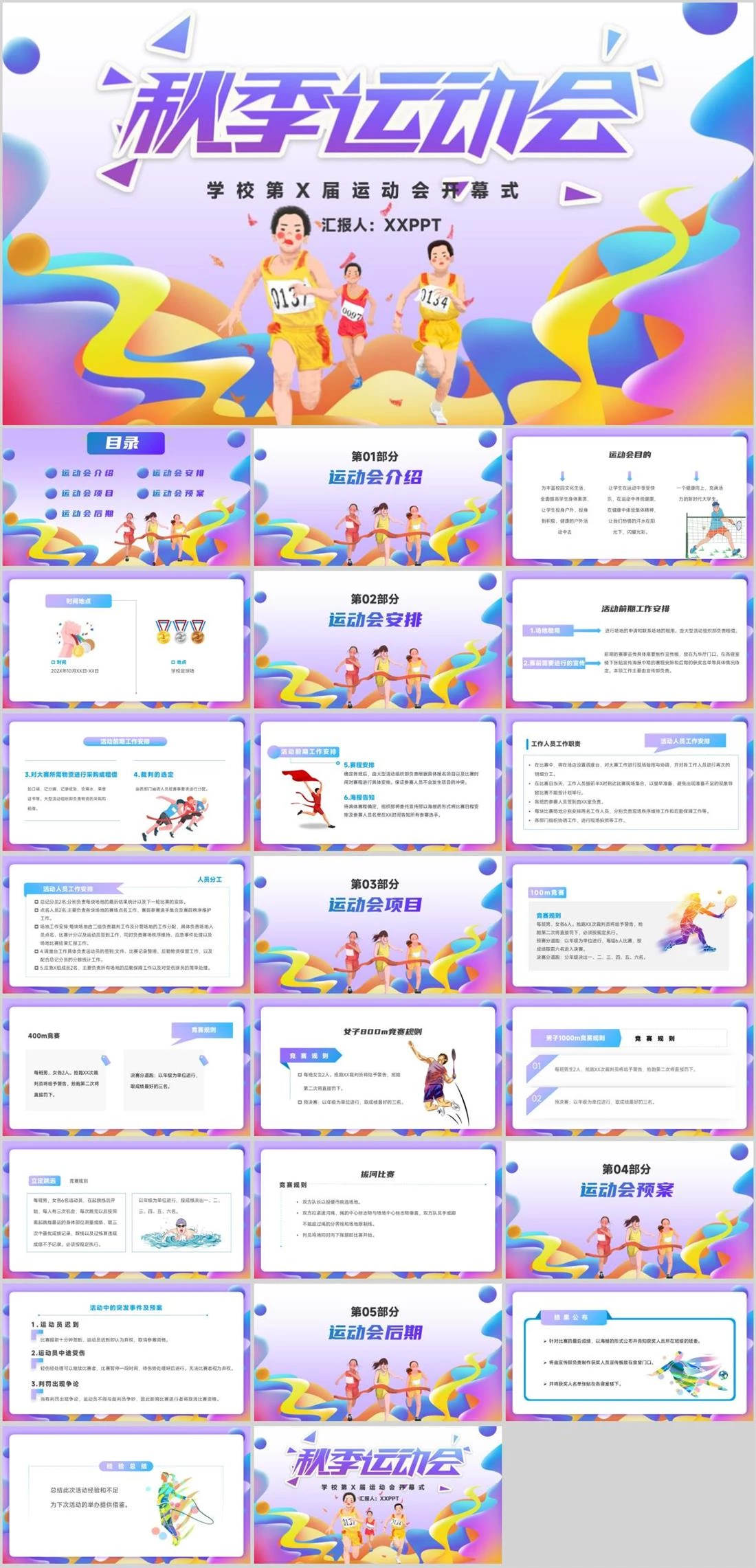学校第X届运动会开幕式汇报人:XXPPT校园活动,489,