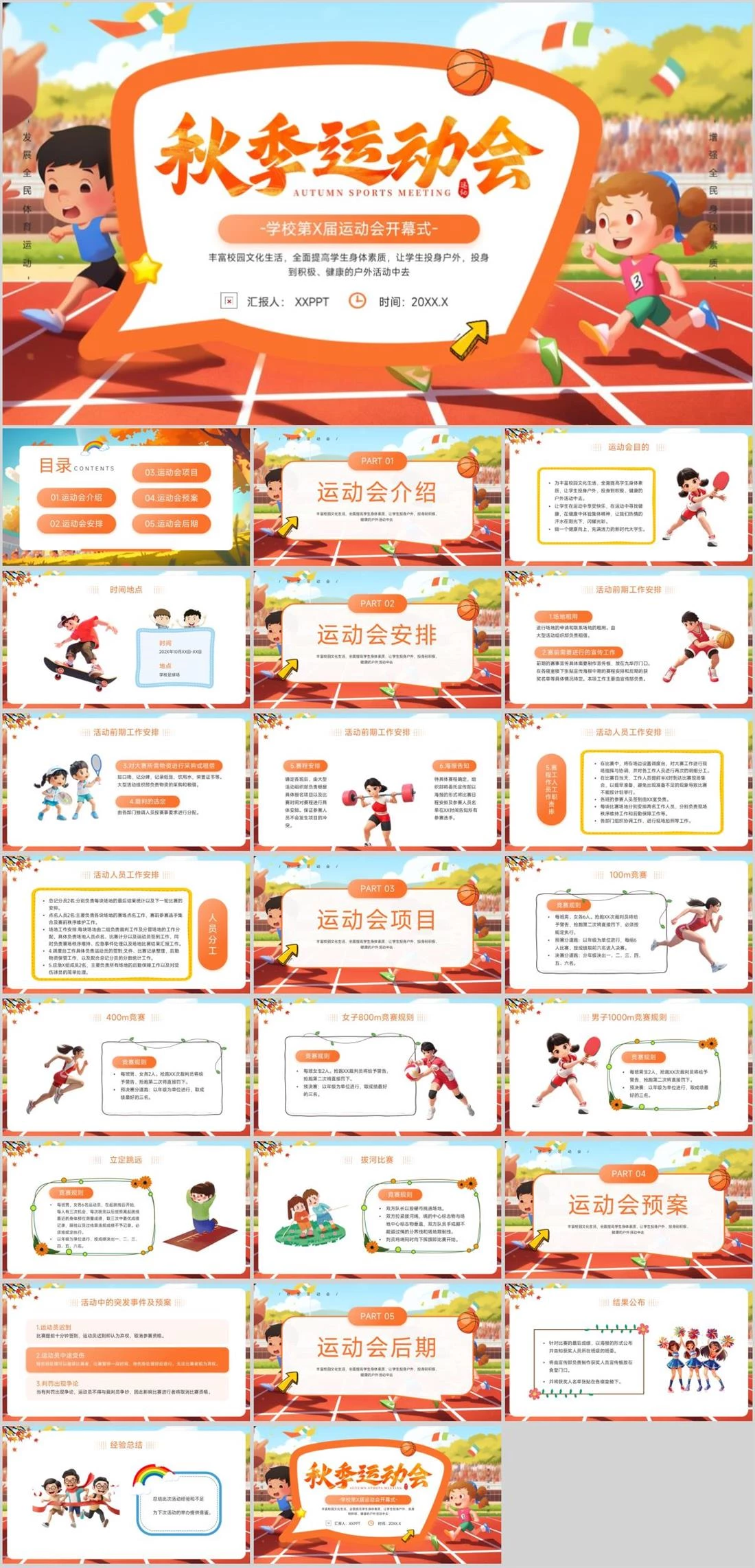 -学校第X届运动会开幕式-丰富校园文化生活,全面提高学生身体素质,让学生投身户外,投身到积极、健康的户外活动中去汇报人: XXPPT时间:20XX.X-发展全民体育运动--增强全民身体素质-校园活动,498,
