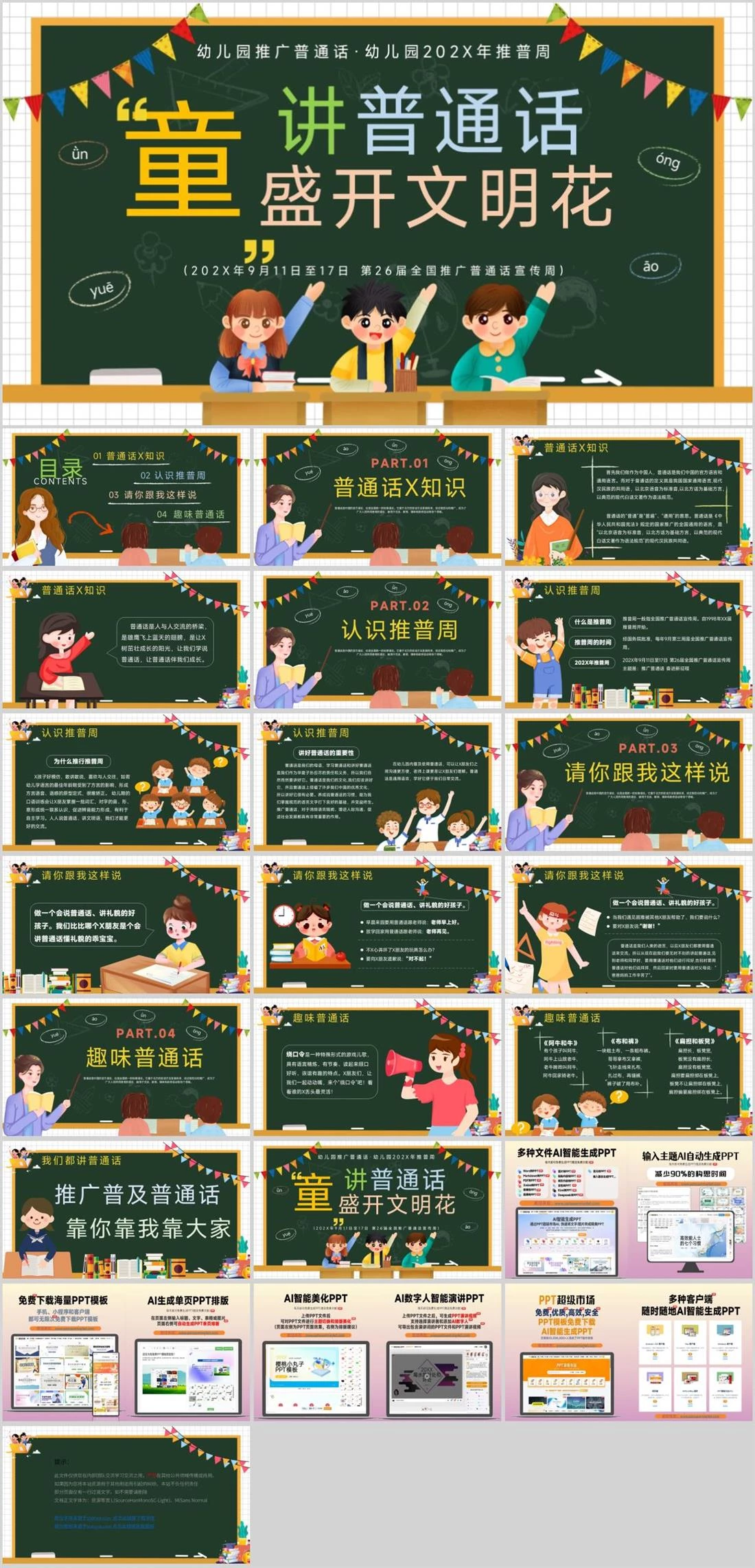 (202X年9月11日至17日 第26届全国推广普通话宣传周)幼儿园推广普通话·幼儿园202X年推普周讲普通话 盛开文明花童ǜnyuēónɡāo幼儿教育,1871,