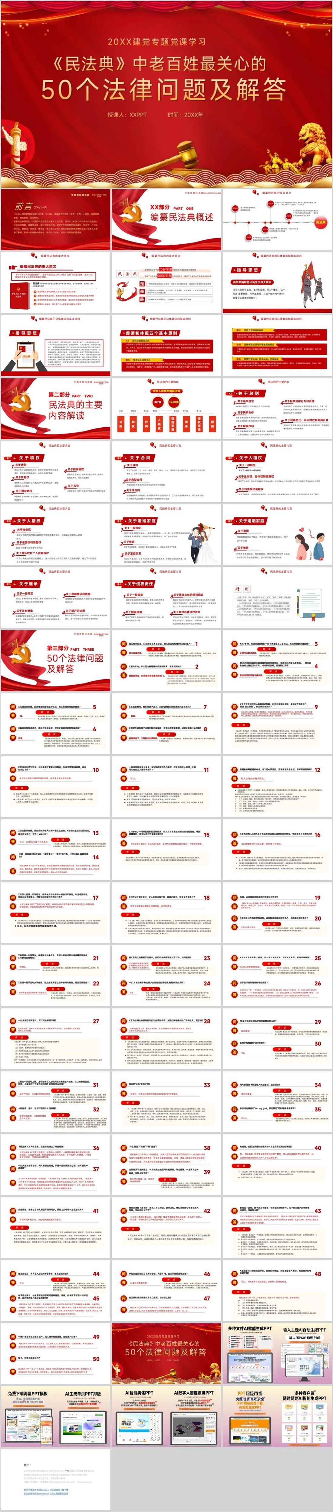 《民法典》中老百姓最关心的授课人:XXPPT时间:20XX年20XX建党专题党课学习50个法律问题及解答法制教育宣传,