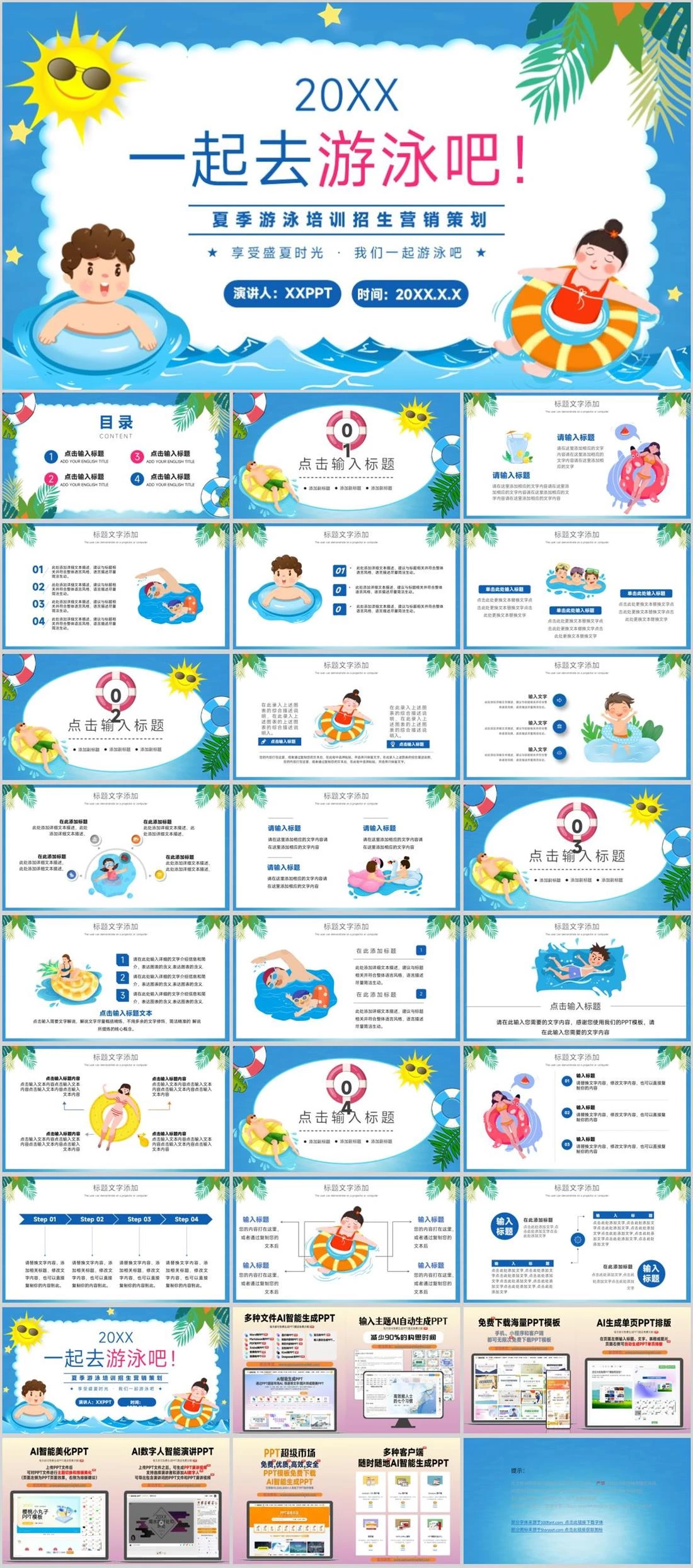 夏季游泳培训招生营销策划★ 享受盛夏时光 · 我们一起游泳吧 ★演讲人:XXPPT时间:20XX.X.X一起去游泳吧!20XX游泳培训,960,