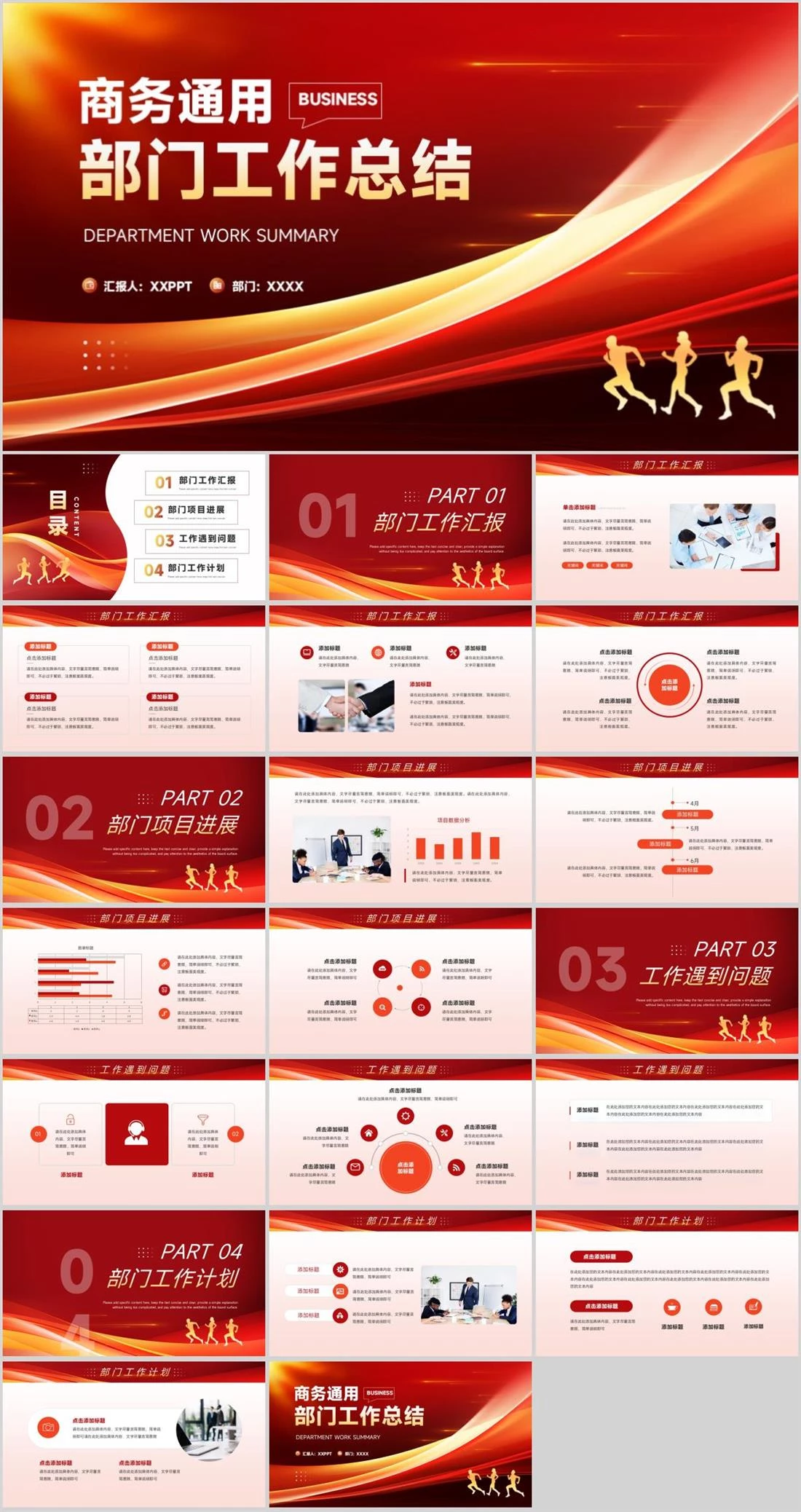 商务通用部门工作总结BUSINESSDepartment work summary部门:XXXX汇报人:XXPPT工作总结,2623,