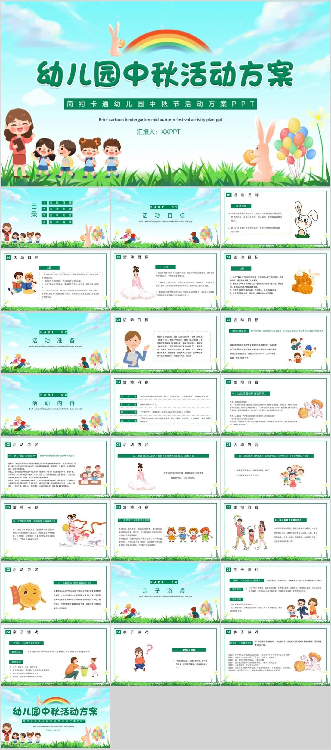 简约卡通幼儿园中秋节活动方案PPTBrief cartoon kindergarten mid autumn festival activity plan ppt汇报人:XXPPT幼儿教育,1688,