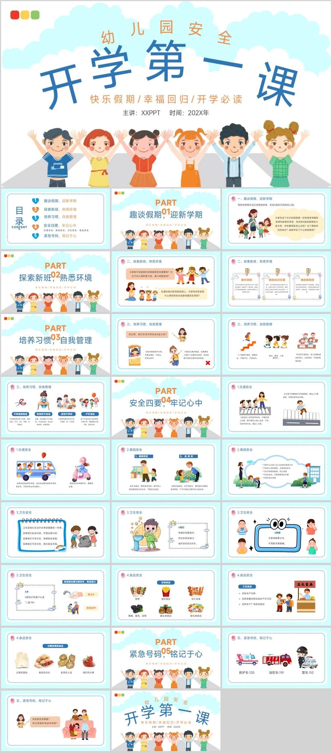 开全快乐假期/幸福回归/开学必读主讲:XXPPT 时间:202X年幼儿园安第课学一开学,92,