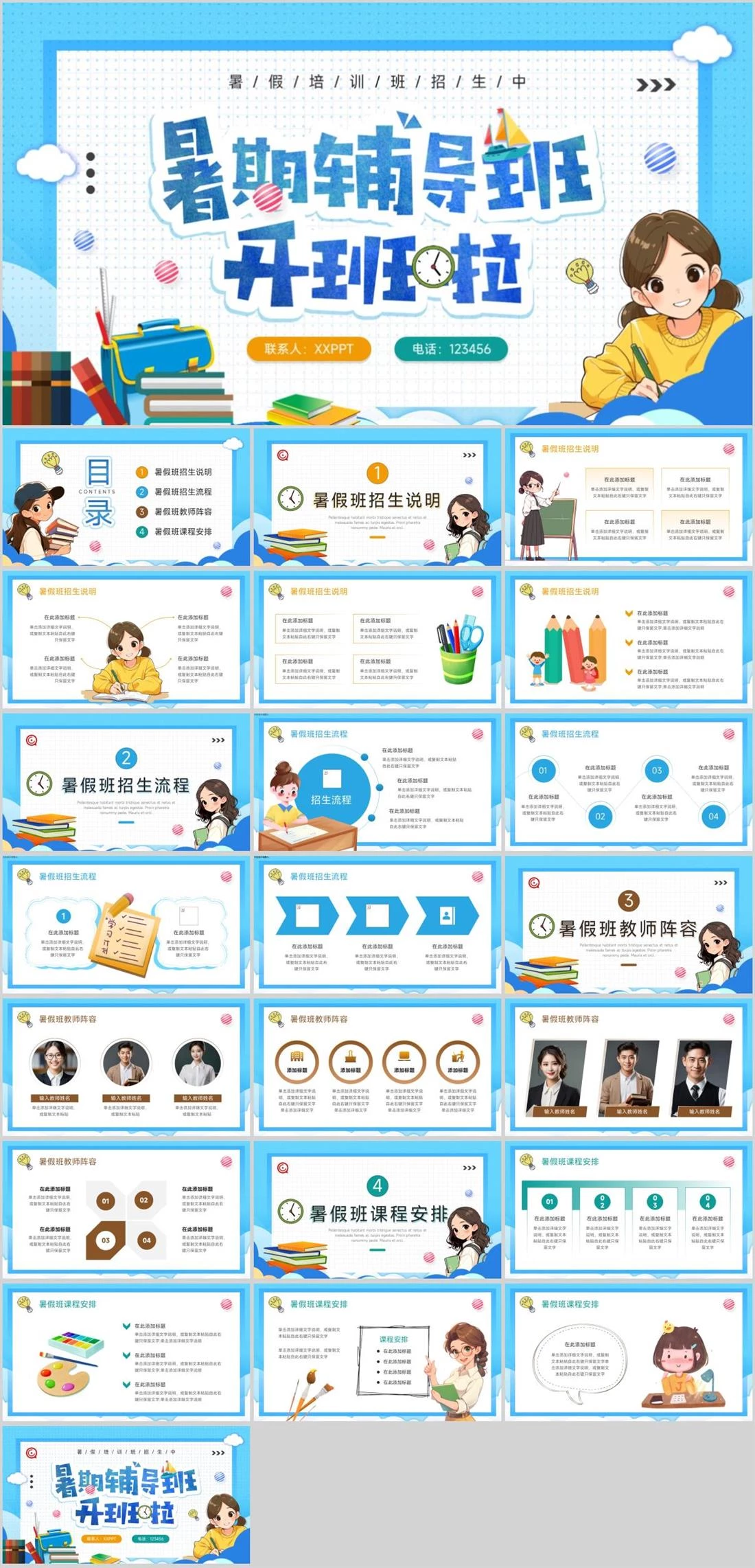 联系人:XXPPT 电话:123456暑/假/培/训/班/招/生/中开学主题,143,