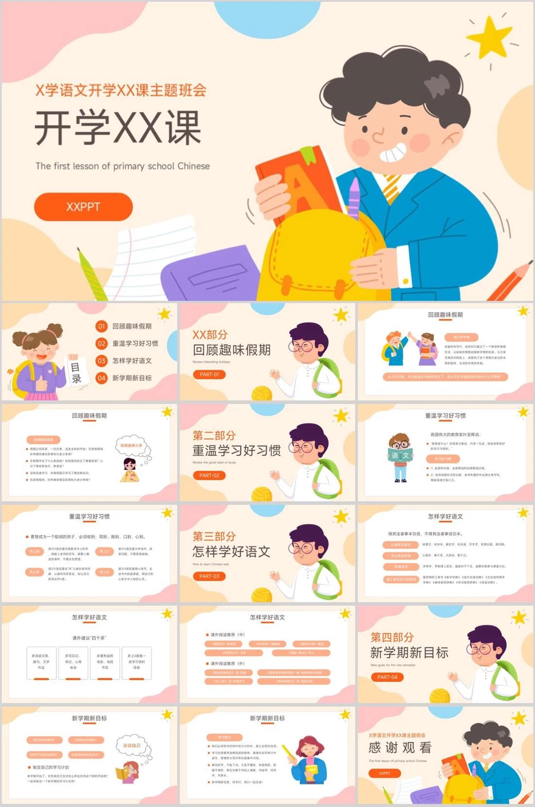 开学XX课X学语文开学XX课主题班会XXPPTThe first lesson of primary school Chinese开学主题,756,