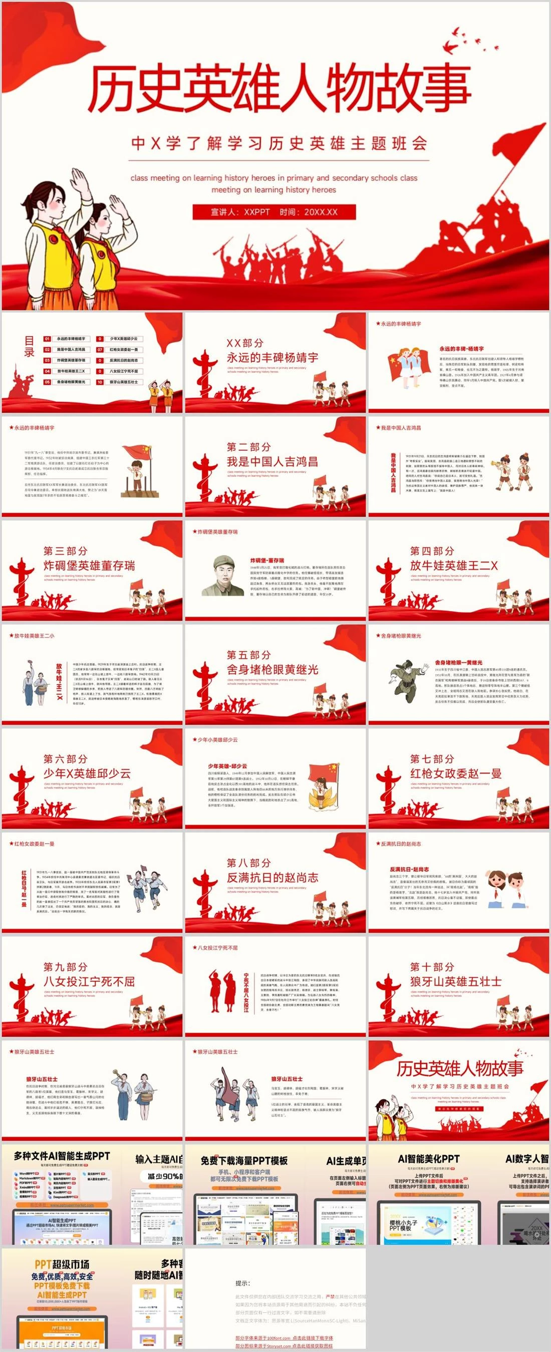 历史英雄人物故事宣讲人:XXPPT 时间:20XX.XXclass meeting on learning history heroes in primary and secondary schools class meeting on learning history heroes中X学红色英雄故事,1506,
