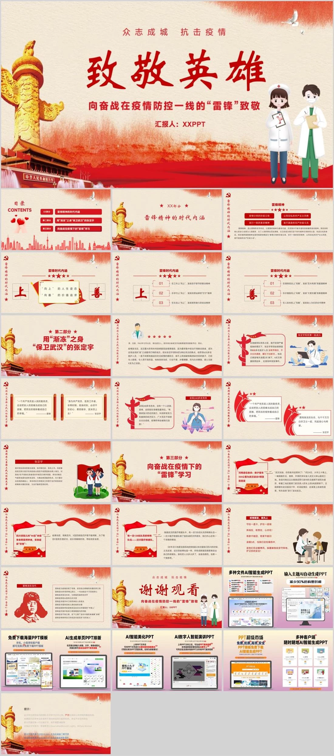 向奋战在疫情防控一线的“雷锋”致敬众志成城 抗击疫情汇报人:XXPPT致敬英雄红色英雄故事,1530,