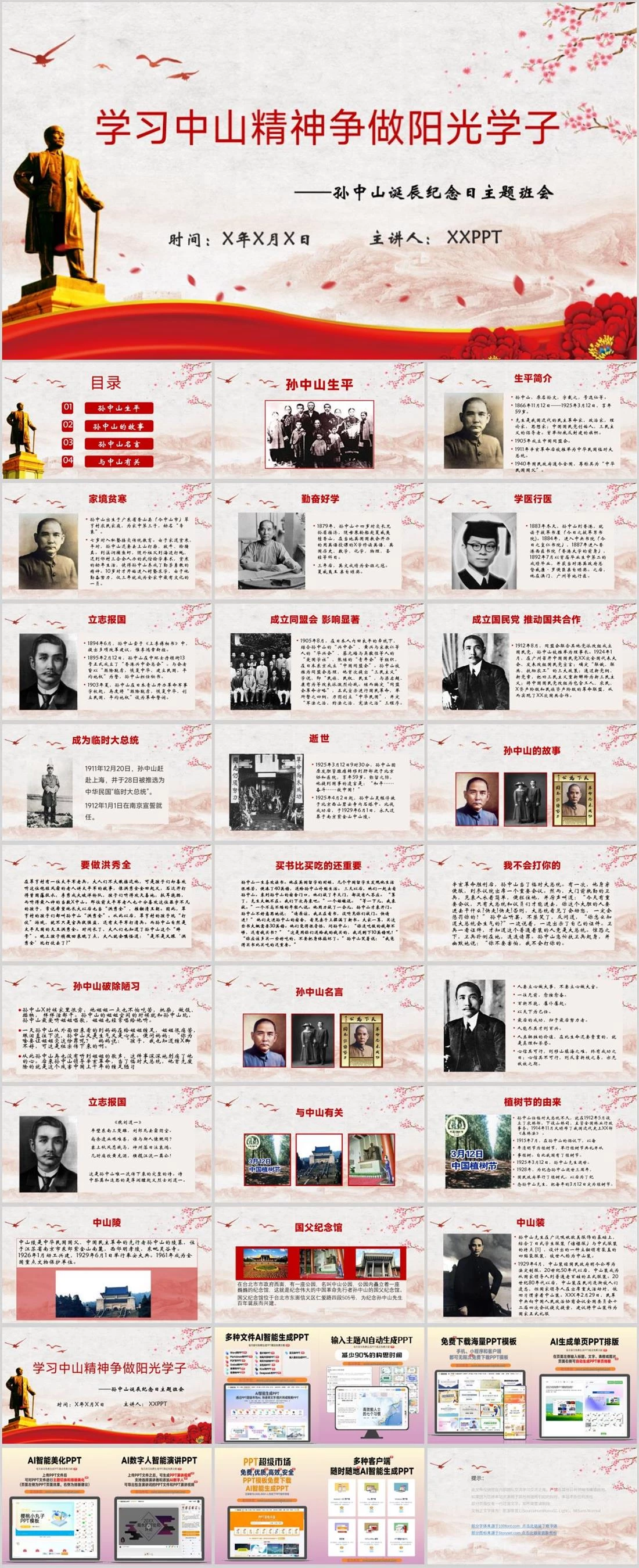 ——孙中山诞辰纪念日主题班会学习中山精神争做阳光学子时间:X年X月X日主讲人: XXPPT 红色英雄故事,1531,